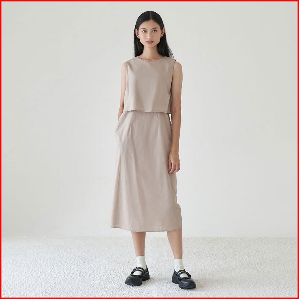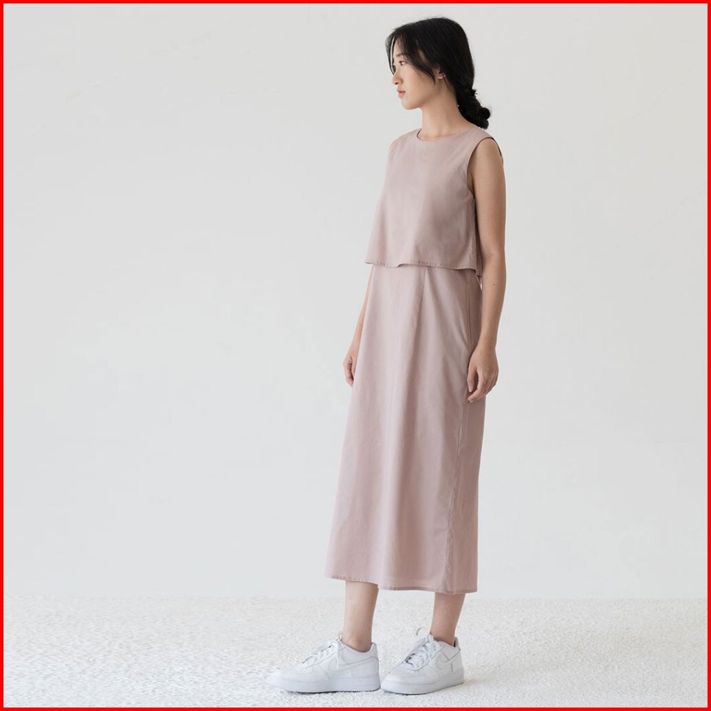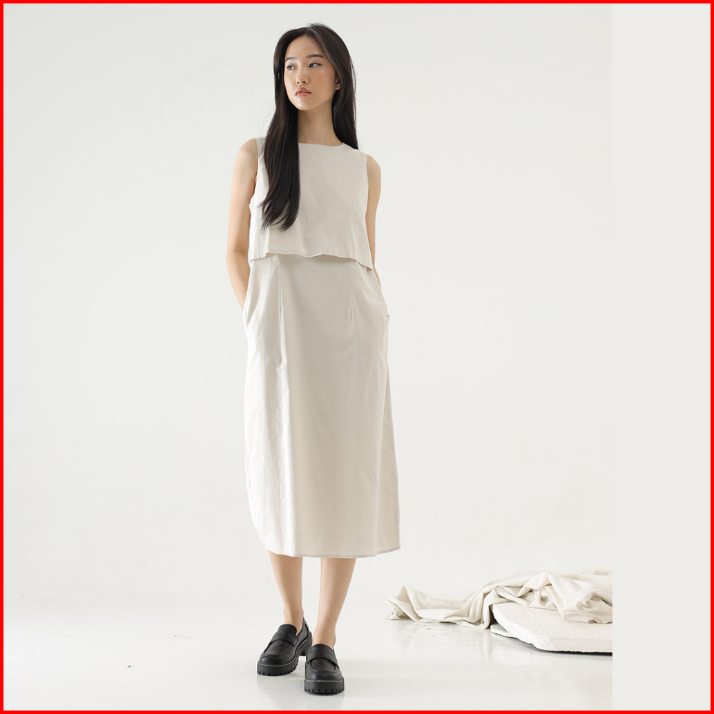 Inkano Seville - Sleeveless Midi Dress Wanita Bahan Katun Warna Beige Coklat Muda Navy Blue Pearl Ivory Peanut Coklat Tu