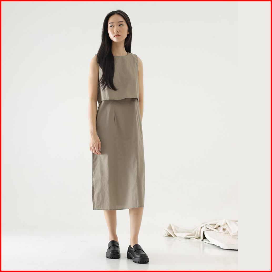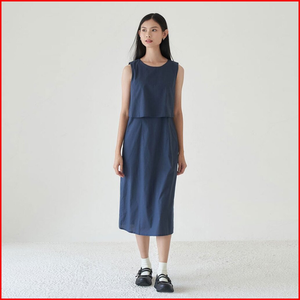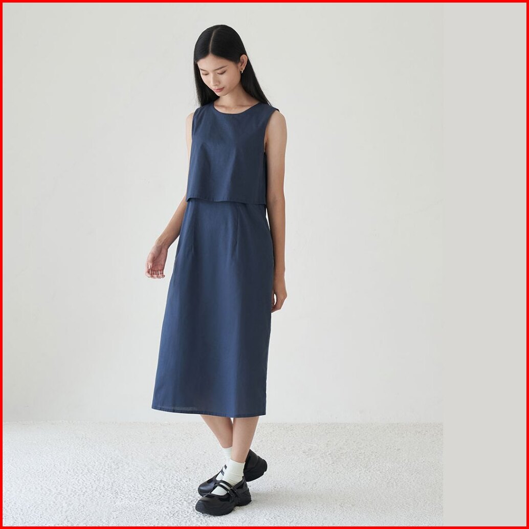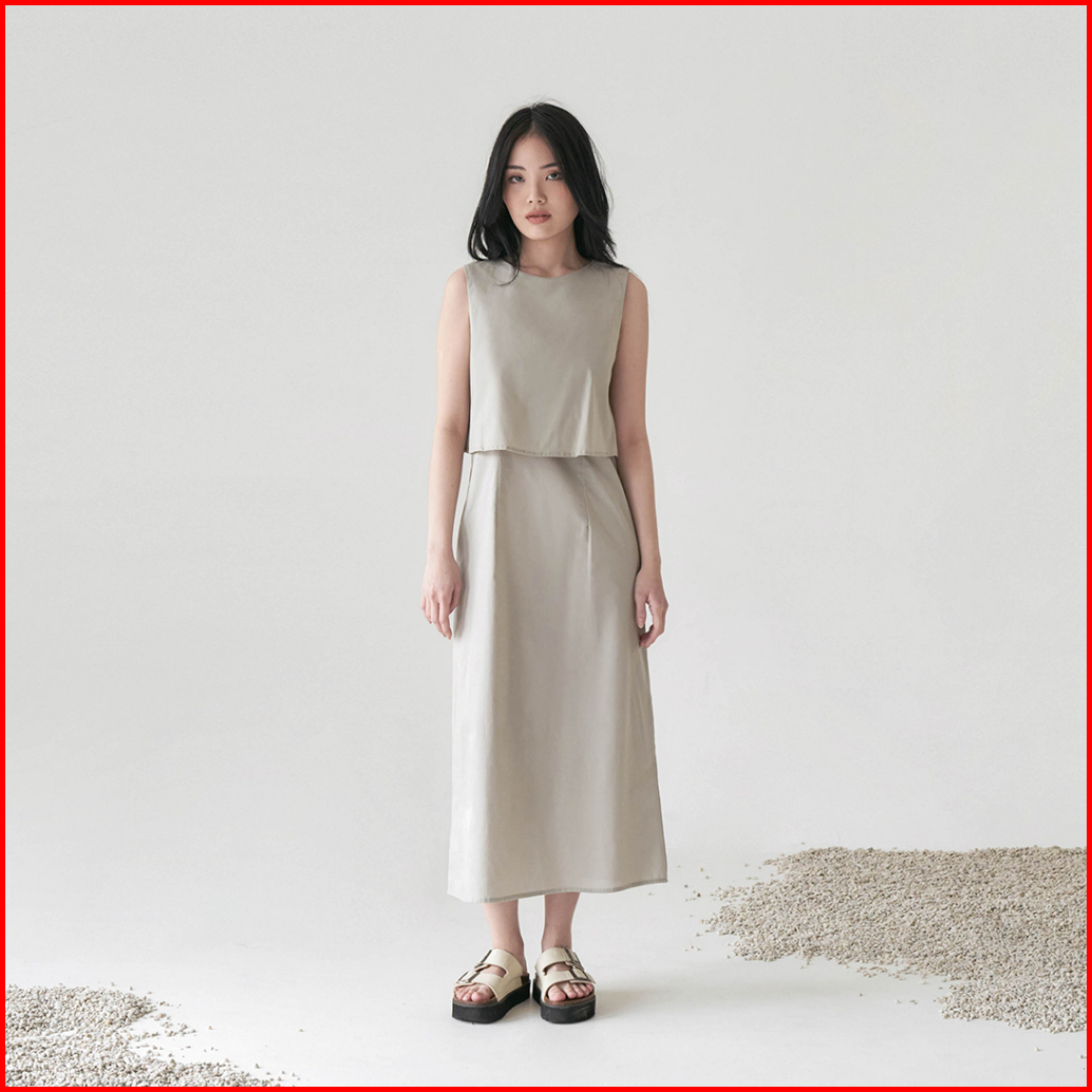 Inkano Seville - Sleeveless Midi Dress Wanita Bahan Katun Warna Beige Coklat Muda Navy Blue Pearl Ivory Peanut Coklat Tu