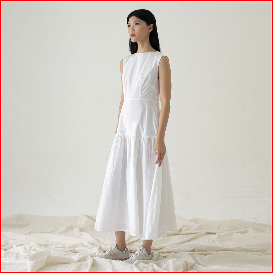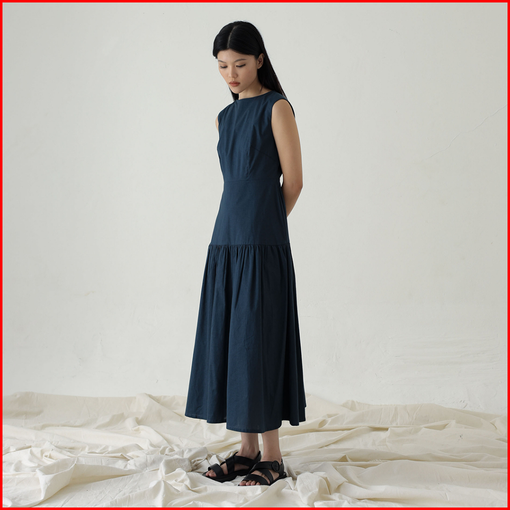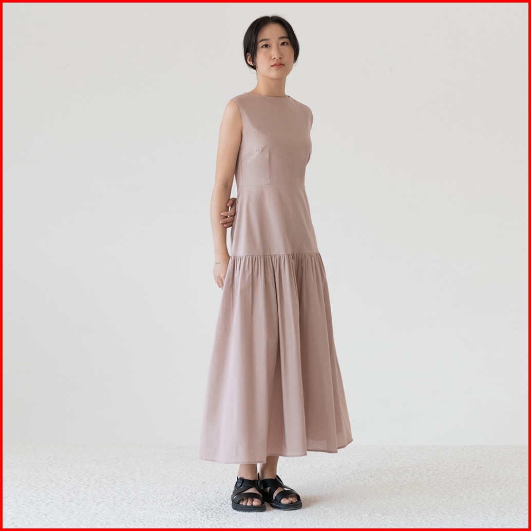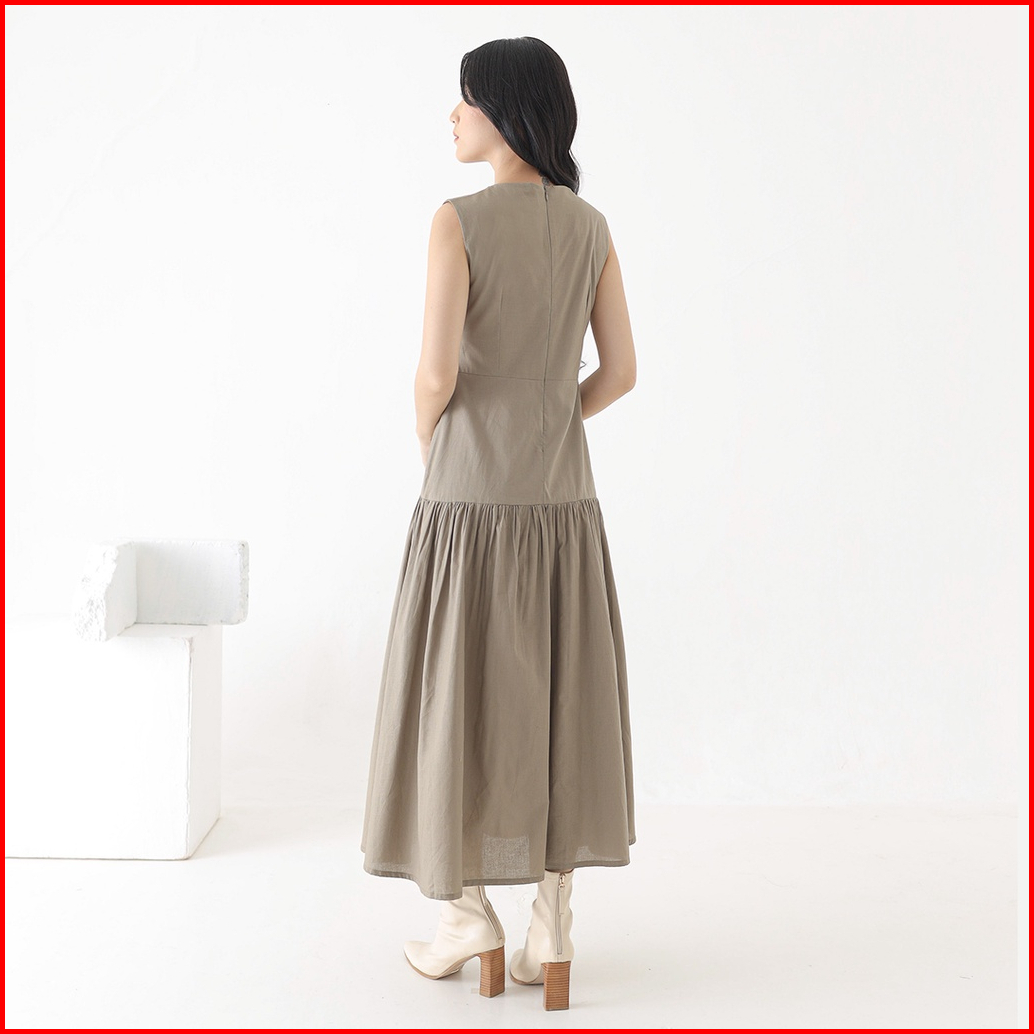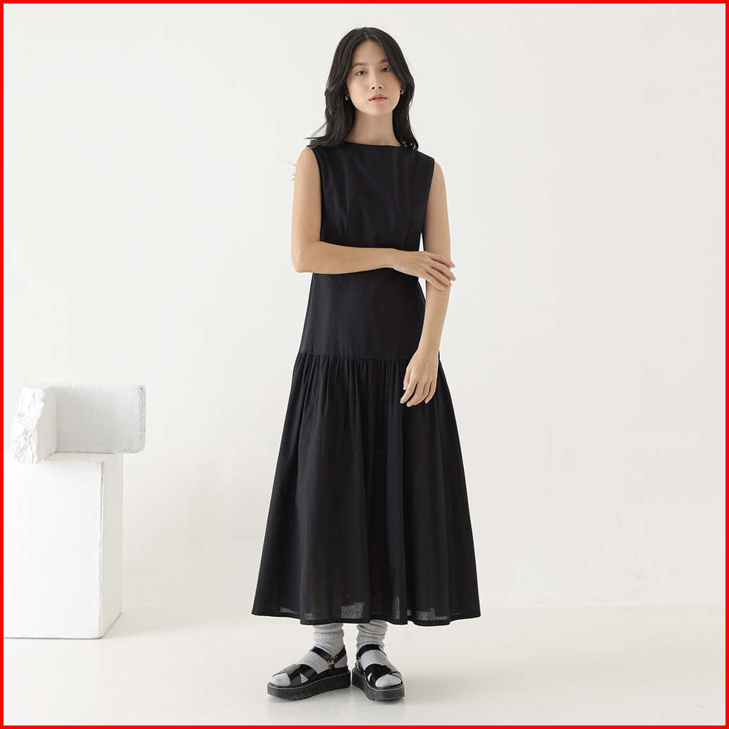 Inkano Spire Dress - Sleeveless Dress Korea Wanita Katun Warna Coklat Dan Hitam Black