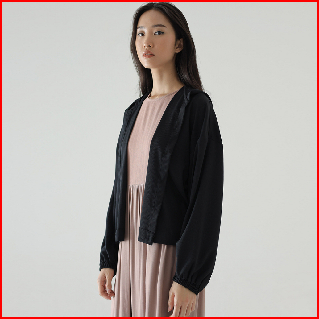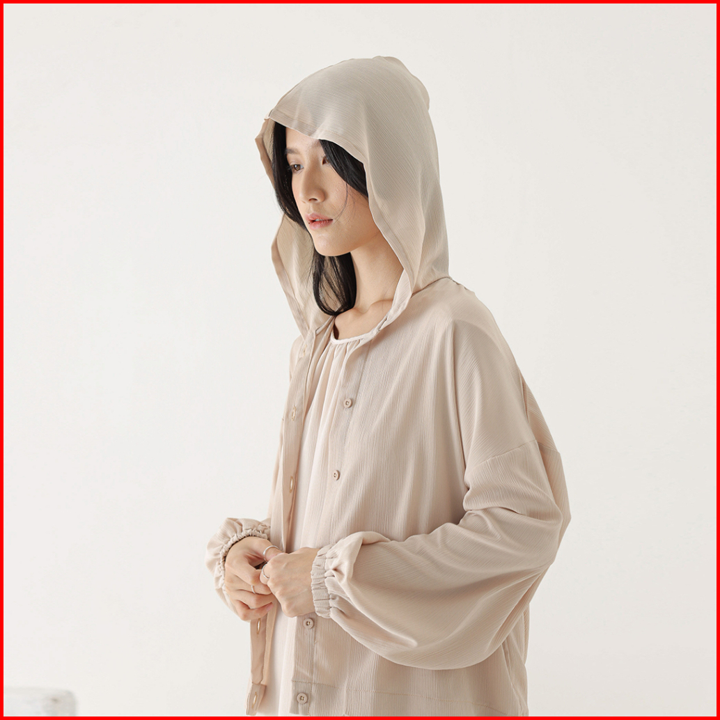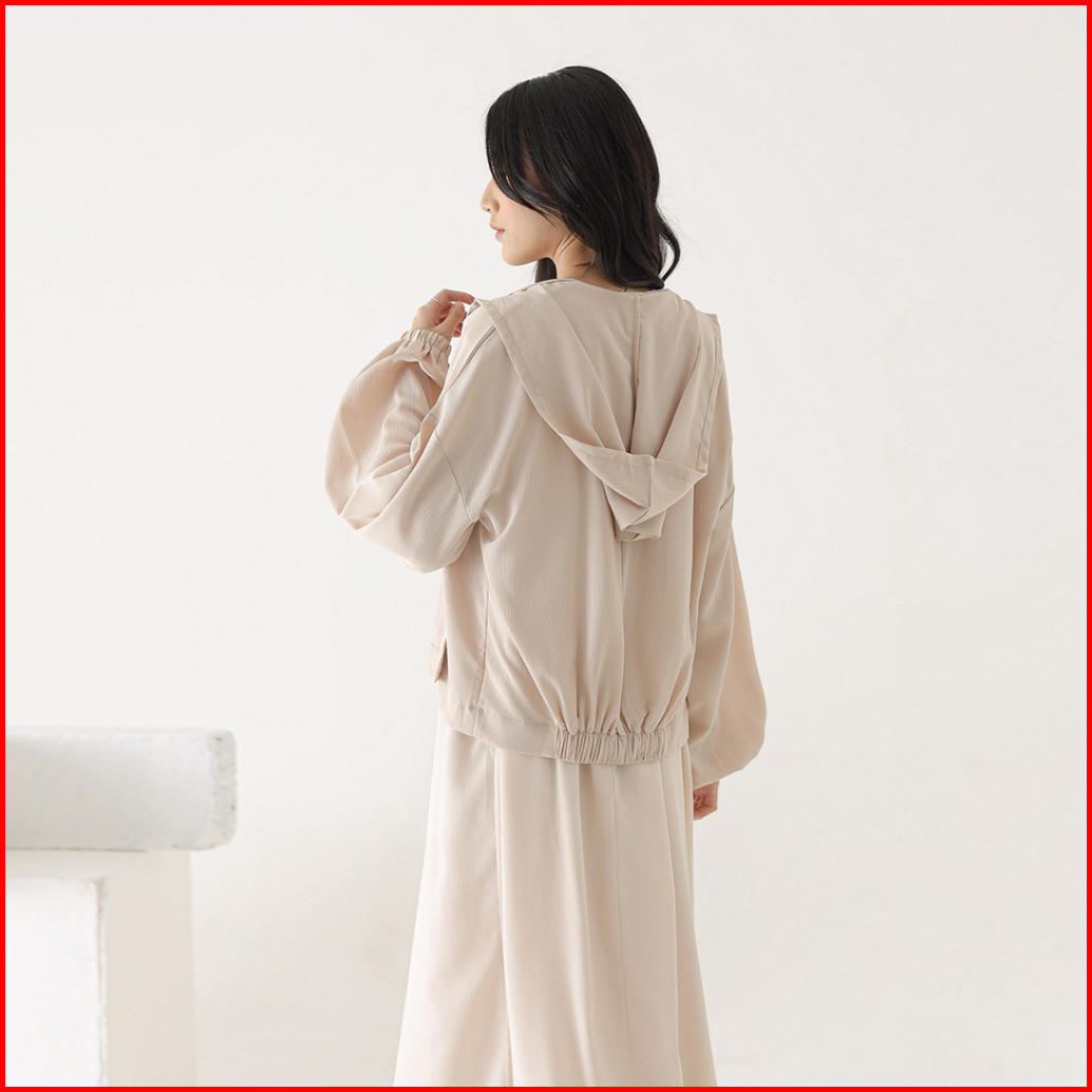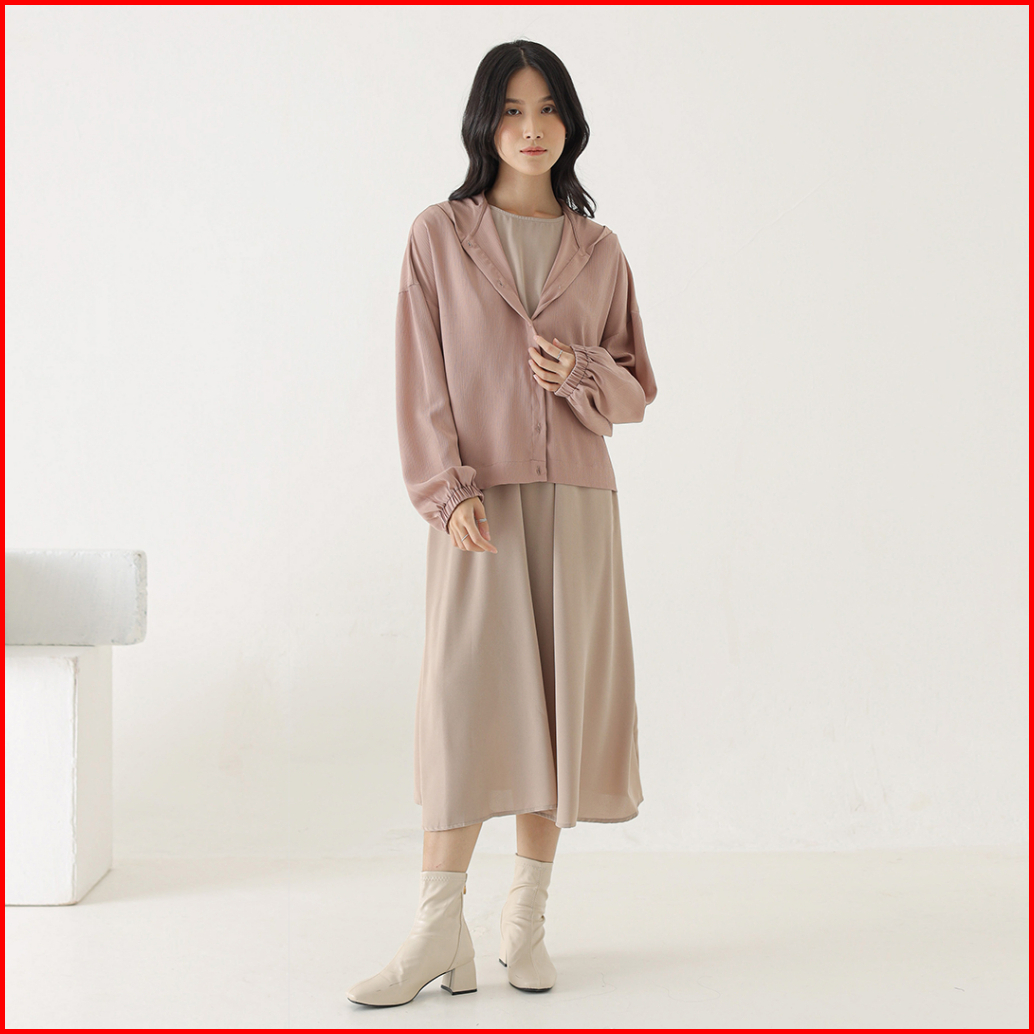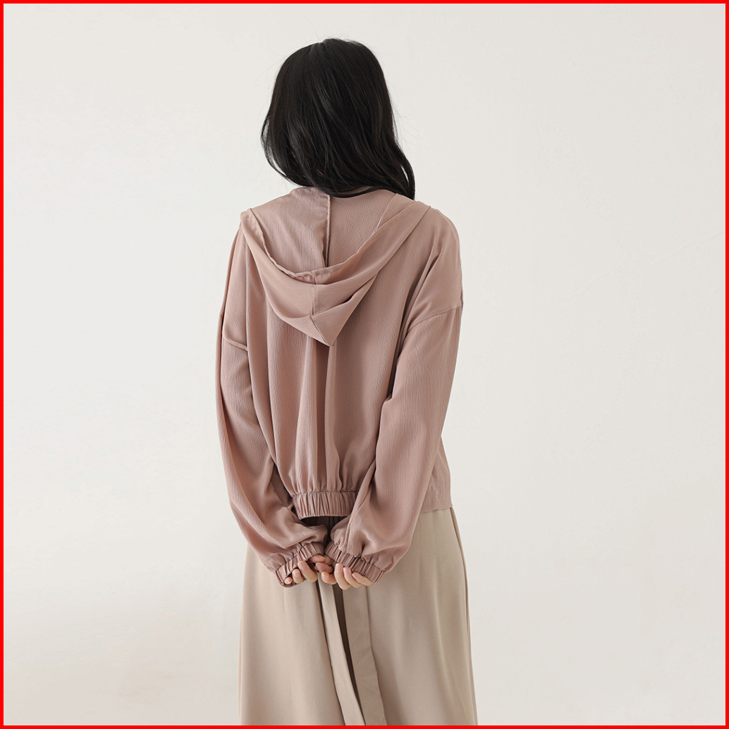 Inkano Cycle Jacket - See Through Jacket Texturized Fabric Jaket Wanita Dengan Hoodie Warna Beige Dusty Pink Coklat
