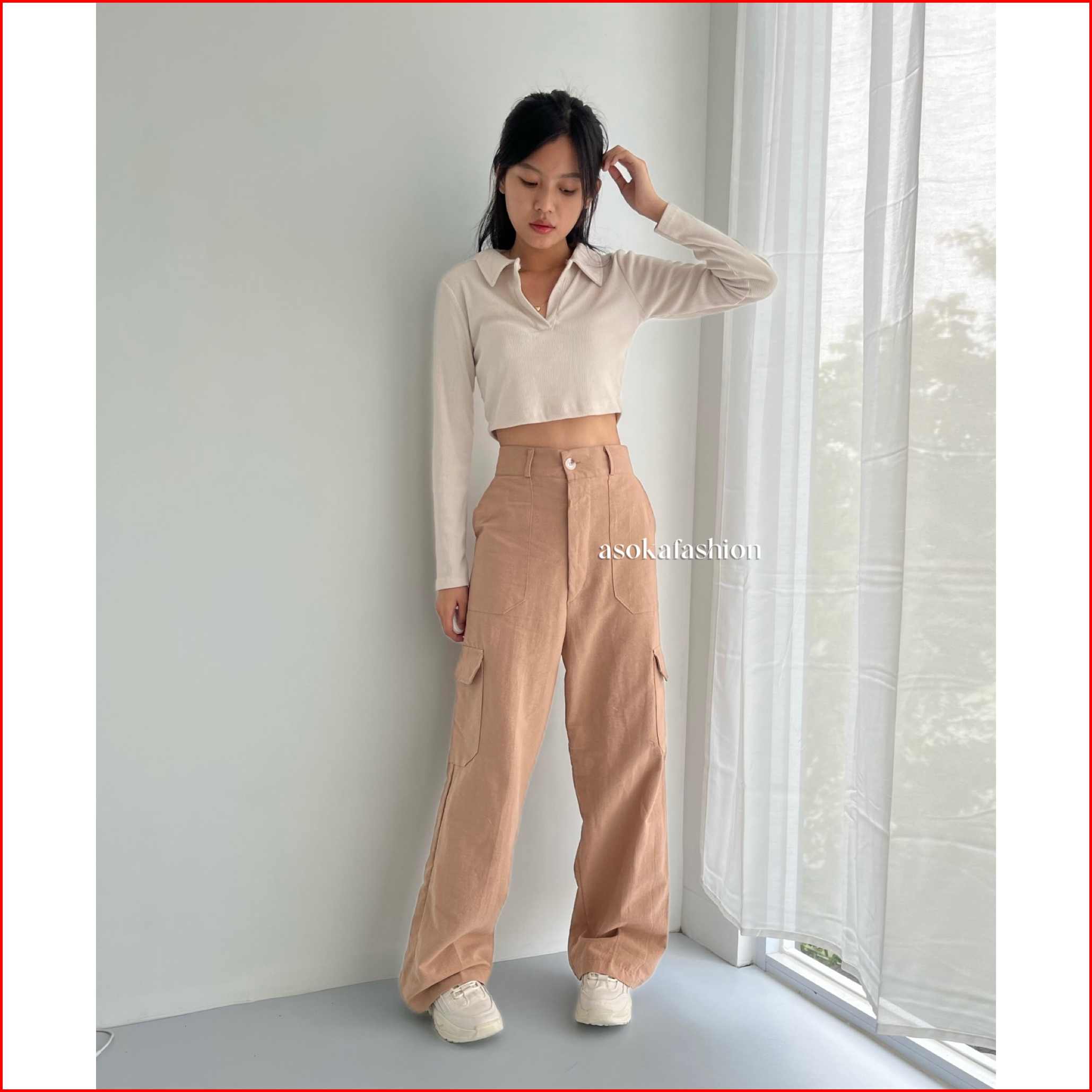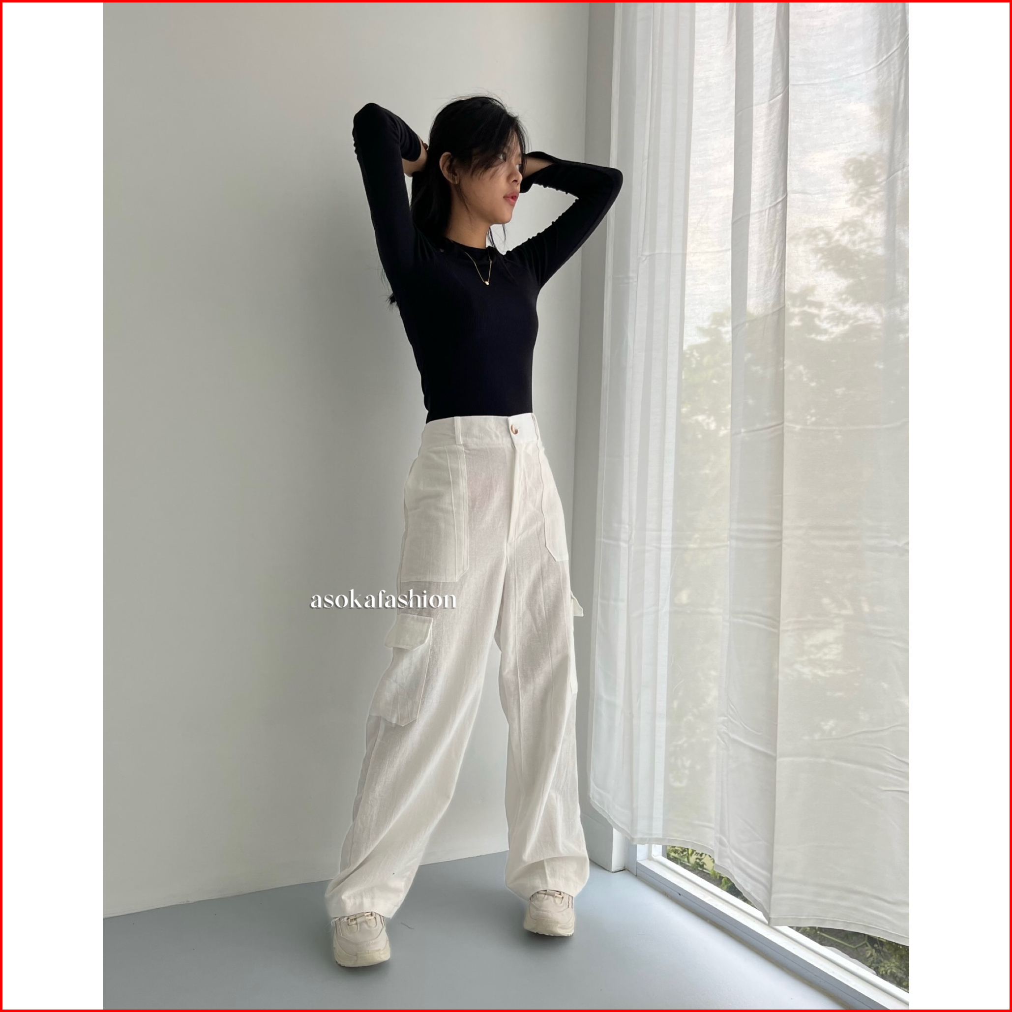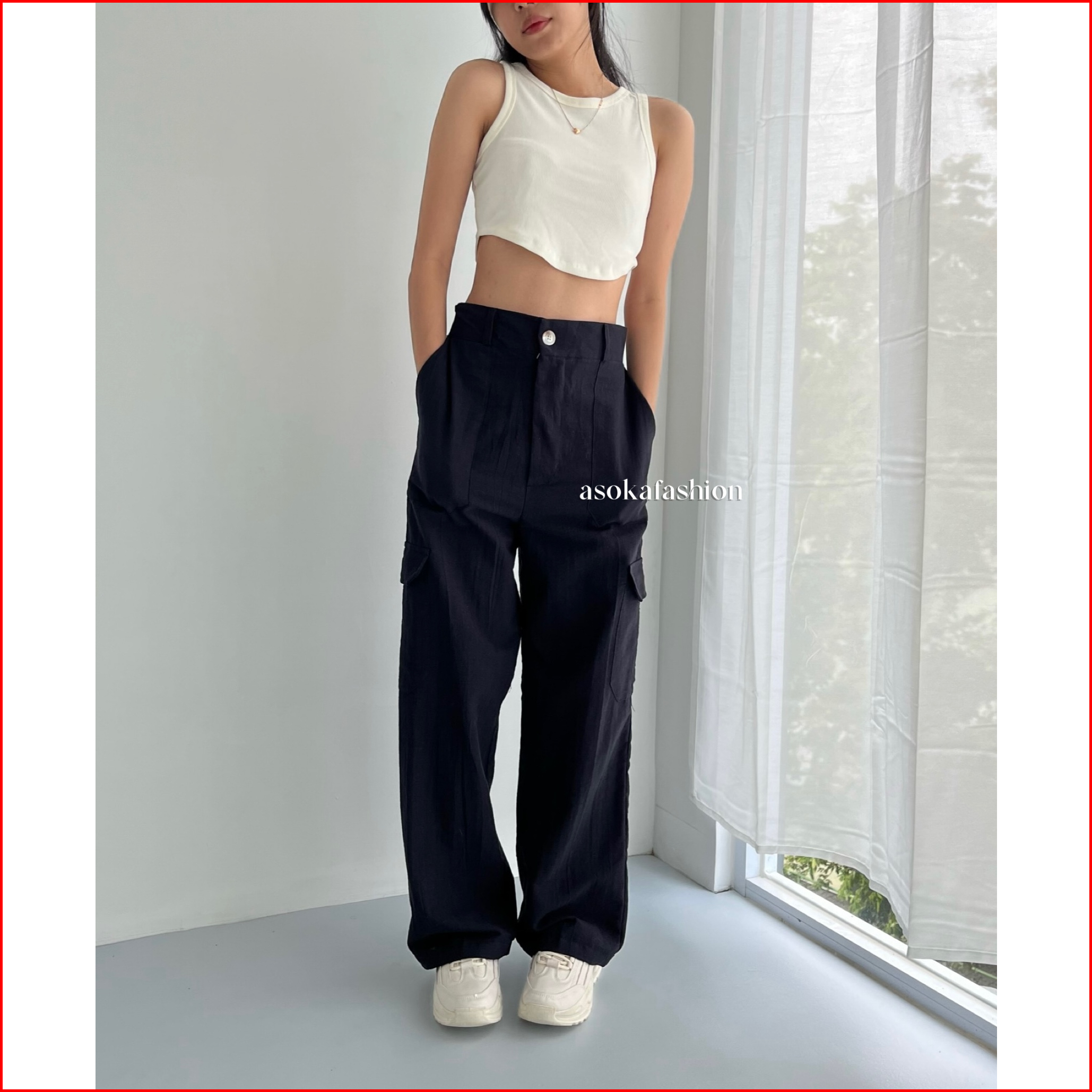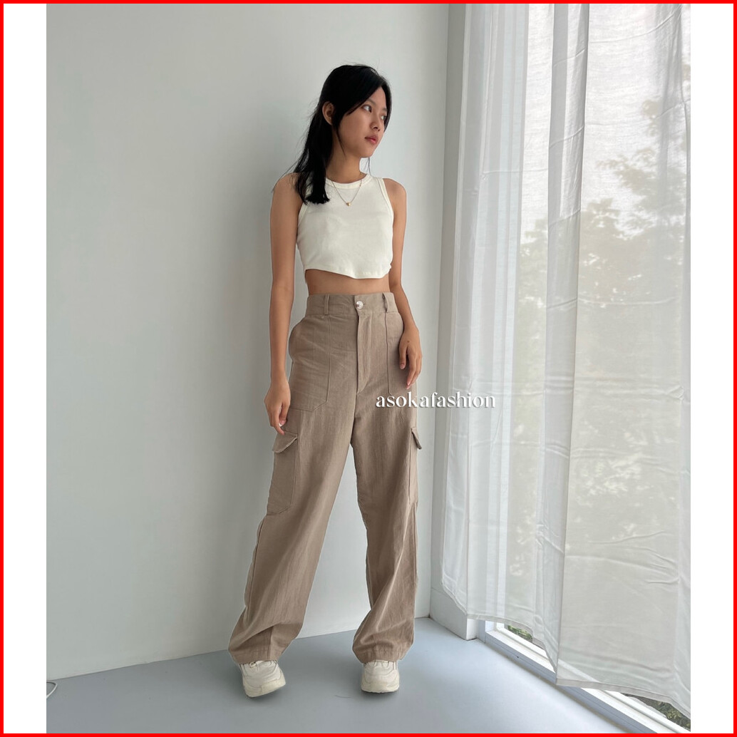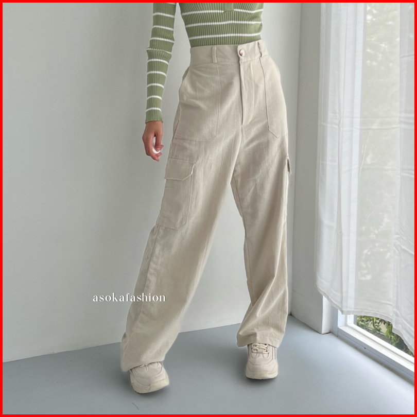 Asoka Jason Cargo 2185 - Highwaist Baggy Pants - Celana Cargo Linen
