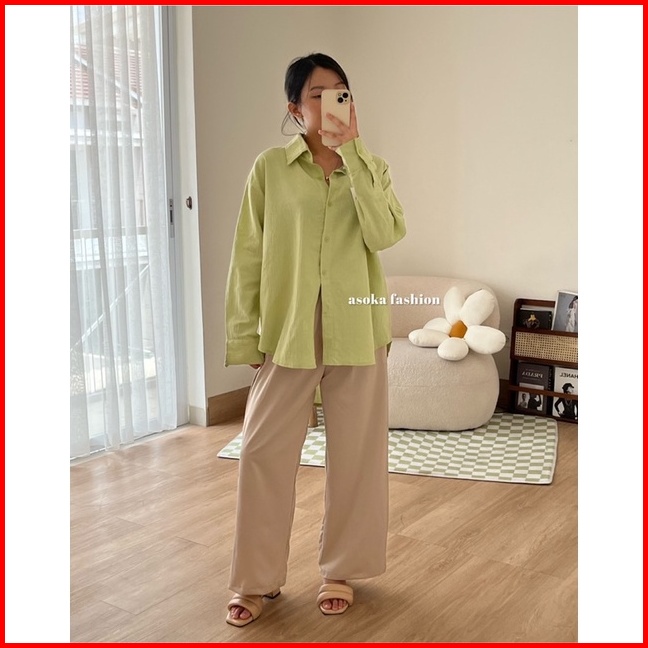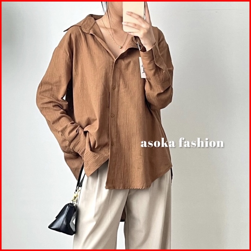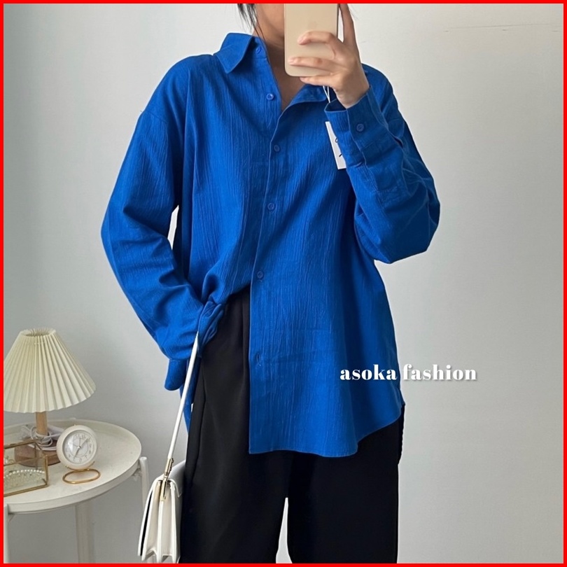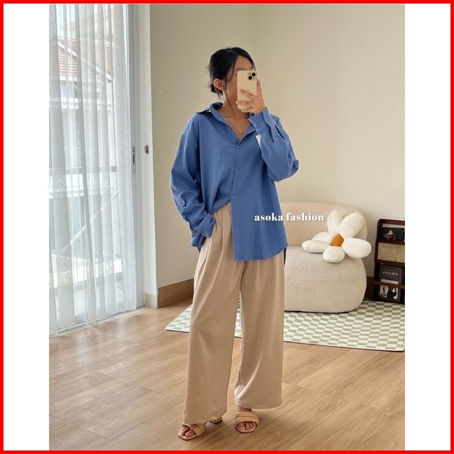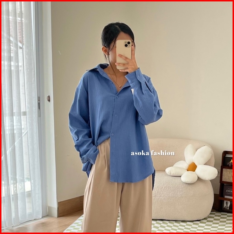 Asoka Suki Shirt 2022 - Kemeja Crinkle Basic Oversize Atasan Wanita - Bumil Friendly