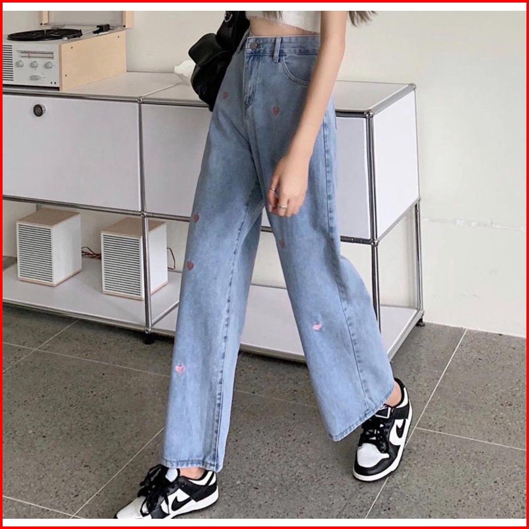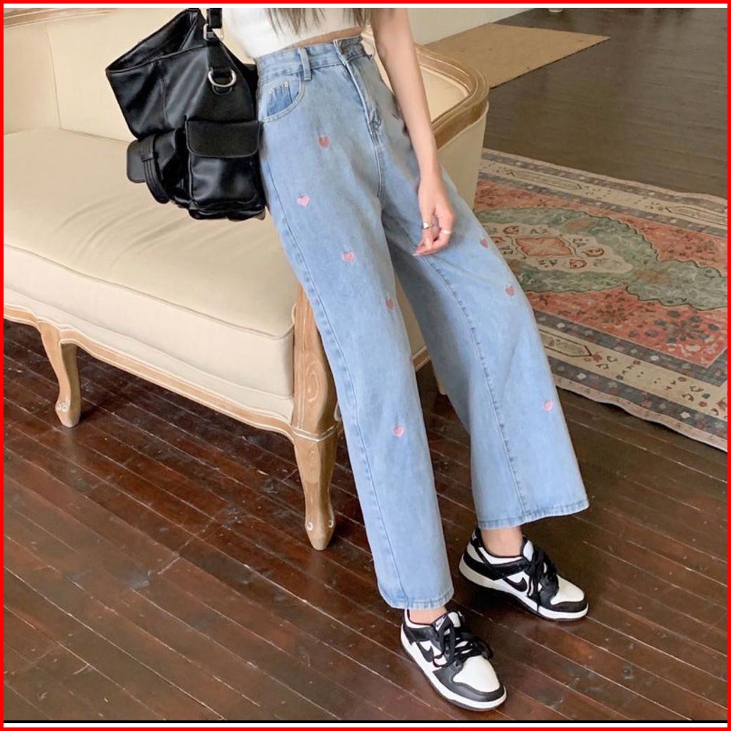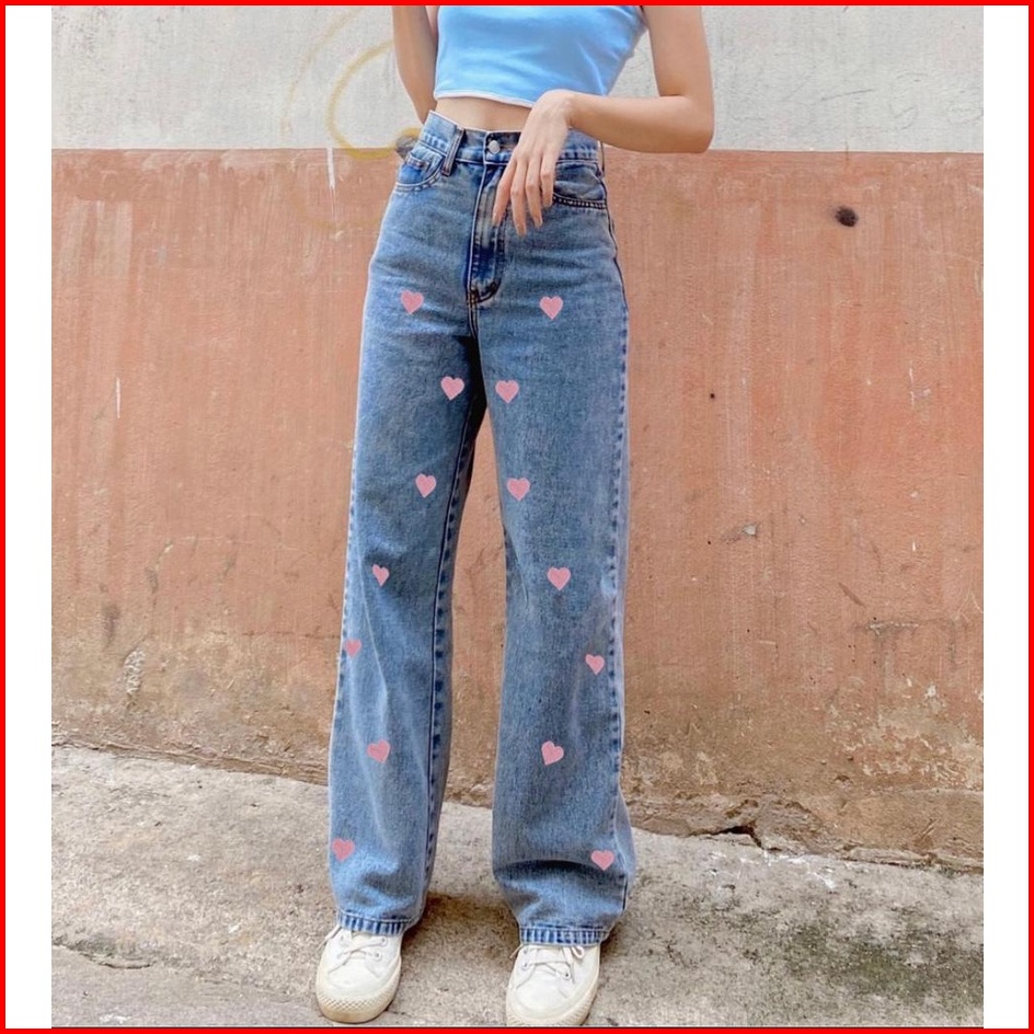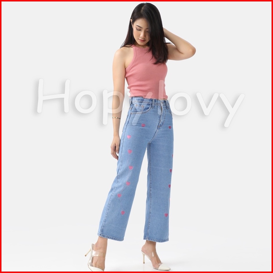 Celana Kulot Jeans Highwaist Wanita Kulot Jeans High Waist Love Bf Jeans Bordir Love Pink Zanina