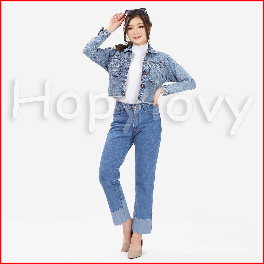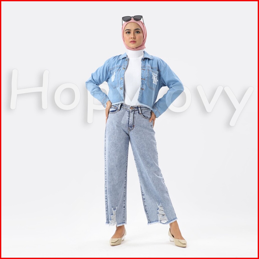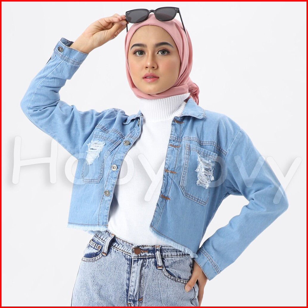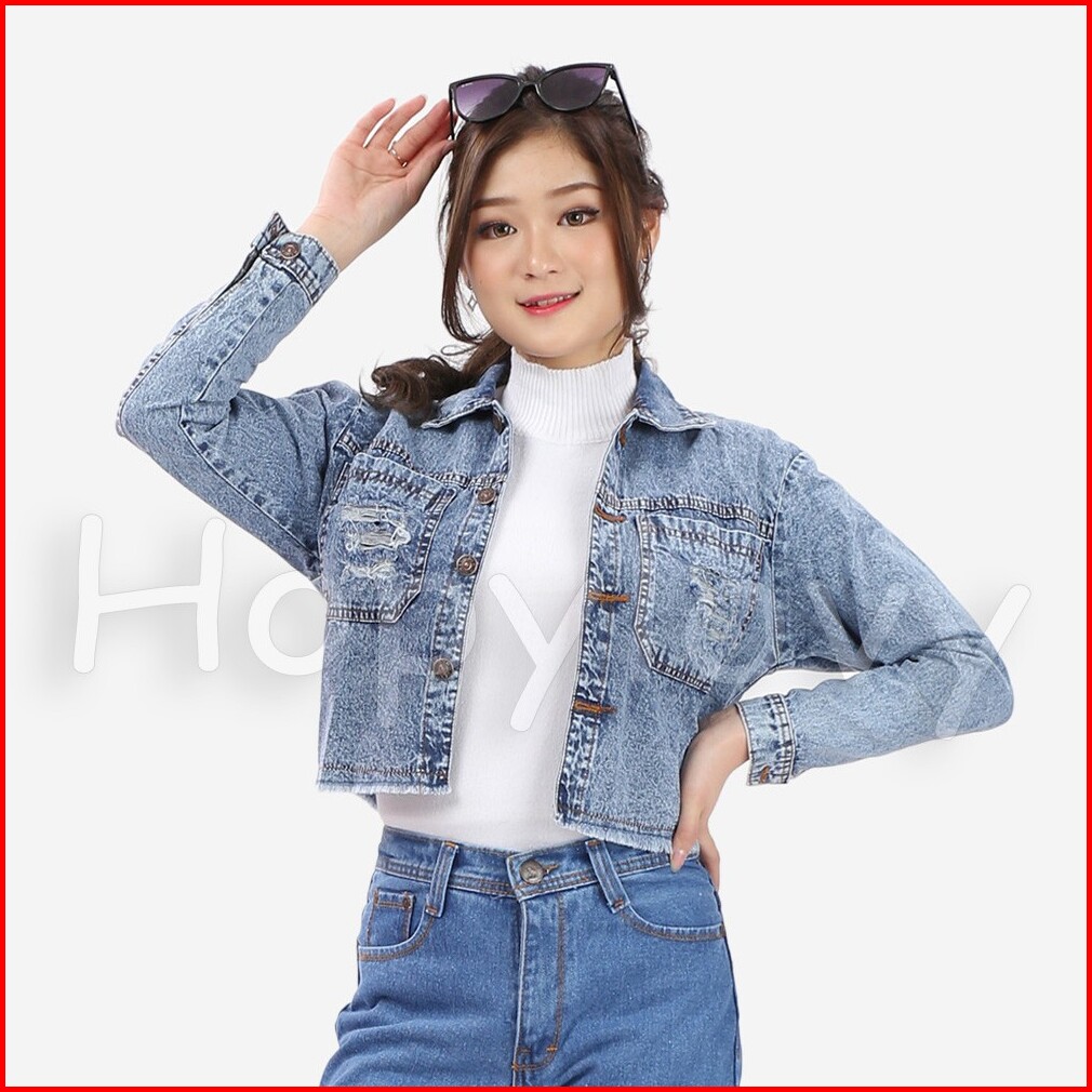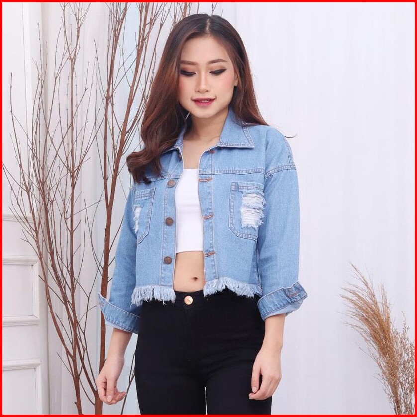 Jaket Jeans Candy Crop Rawis Wanita Jaket Jins Sobek Ripped