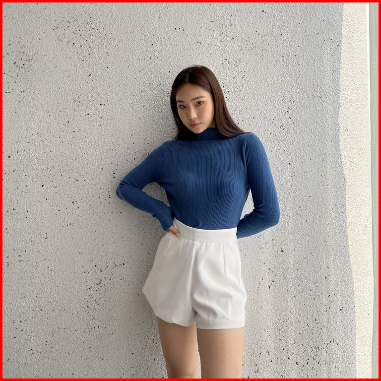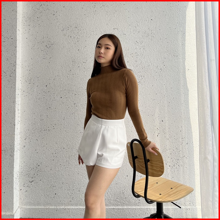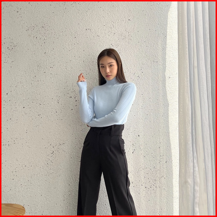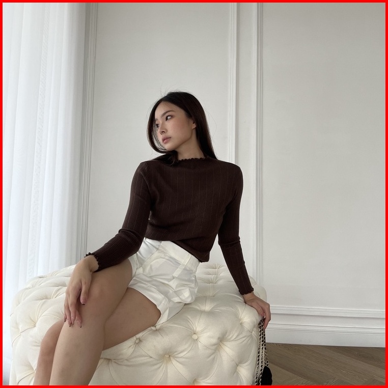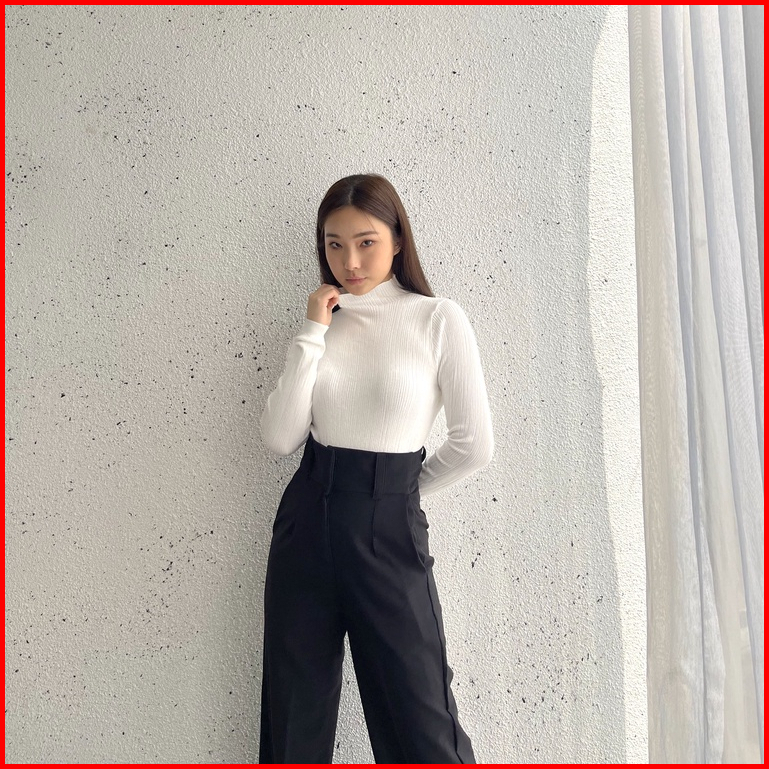 Kiyorawears - Hae Turtleneck Top Atasan Leher Tinggi Top Knit Blouse Rajut Wanita Korean Style