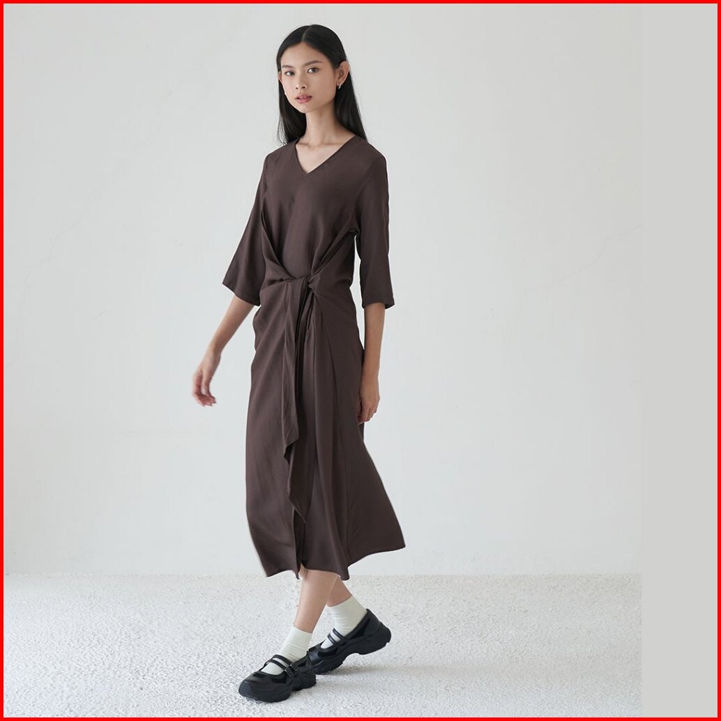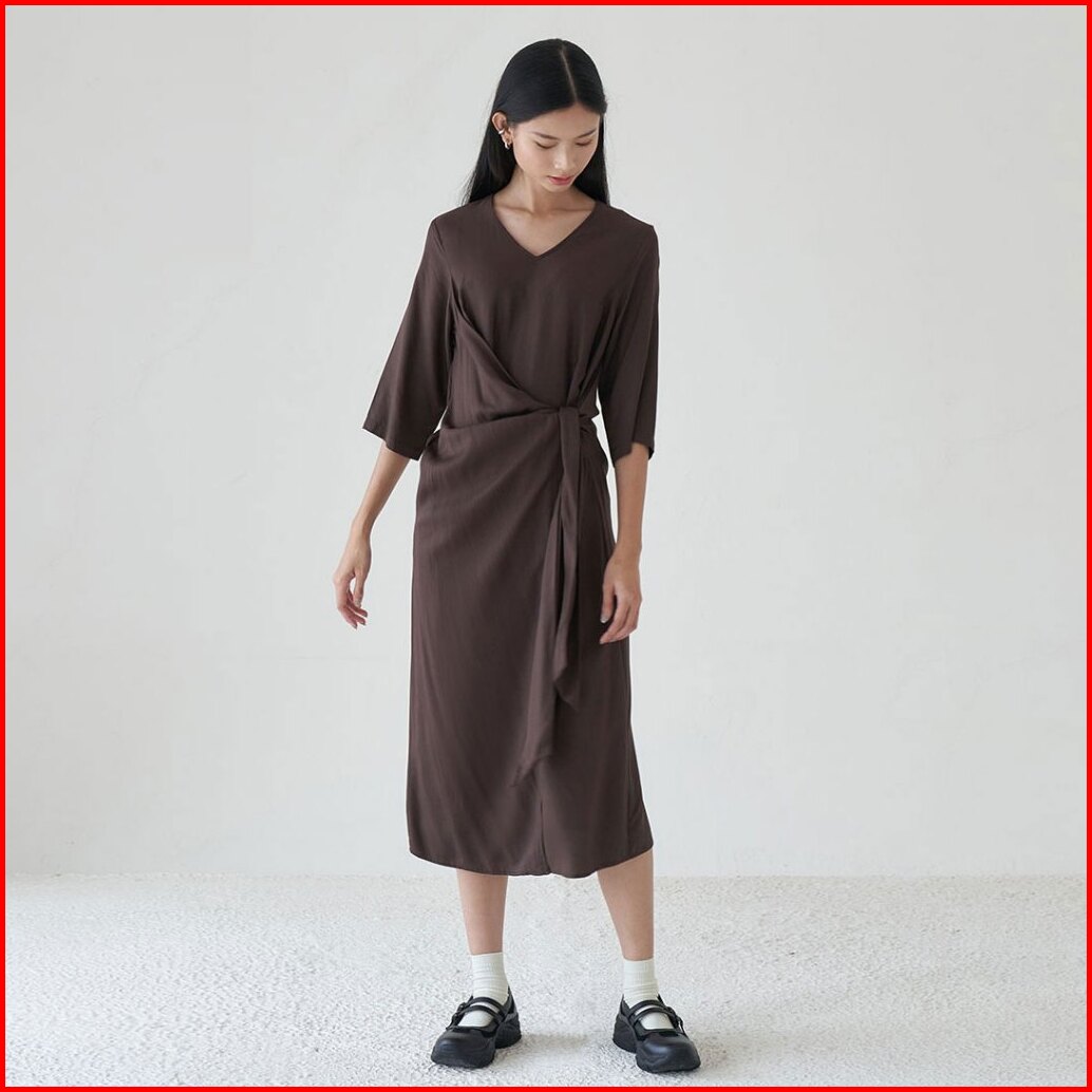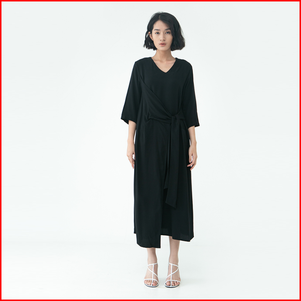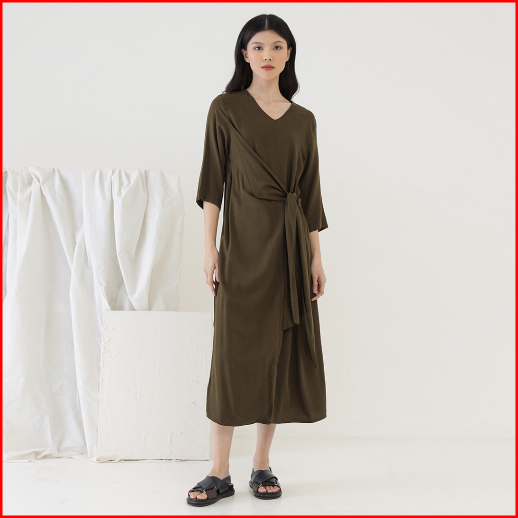 Inkano Gianna - Dress Rayon Dengan Details Ikat Warna Hitam Coklat Muda Hijau Olive Dan Soft Pink