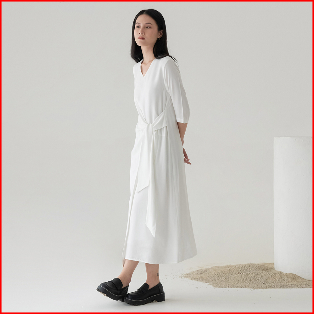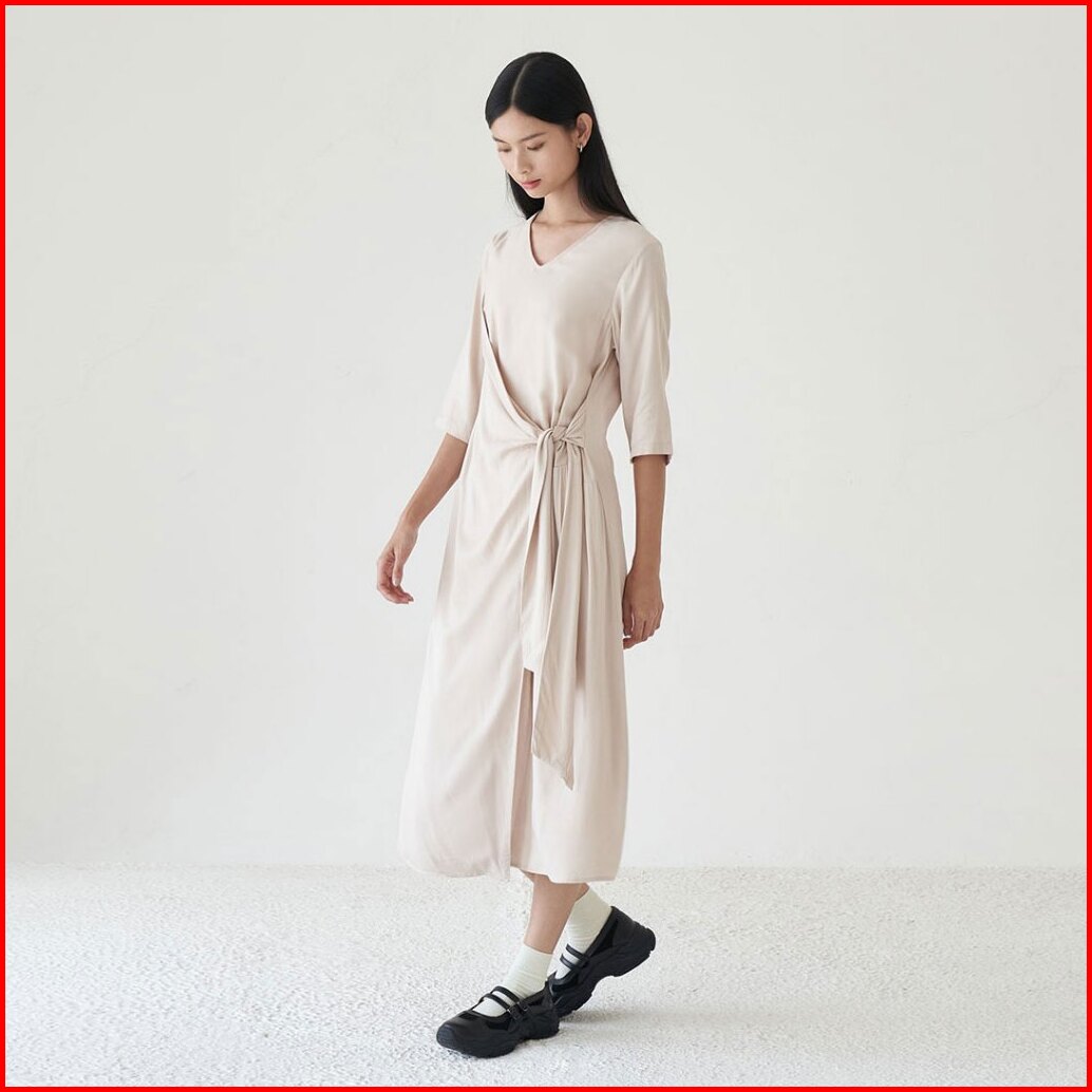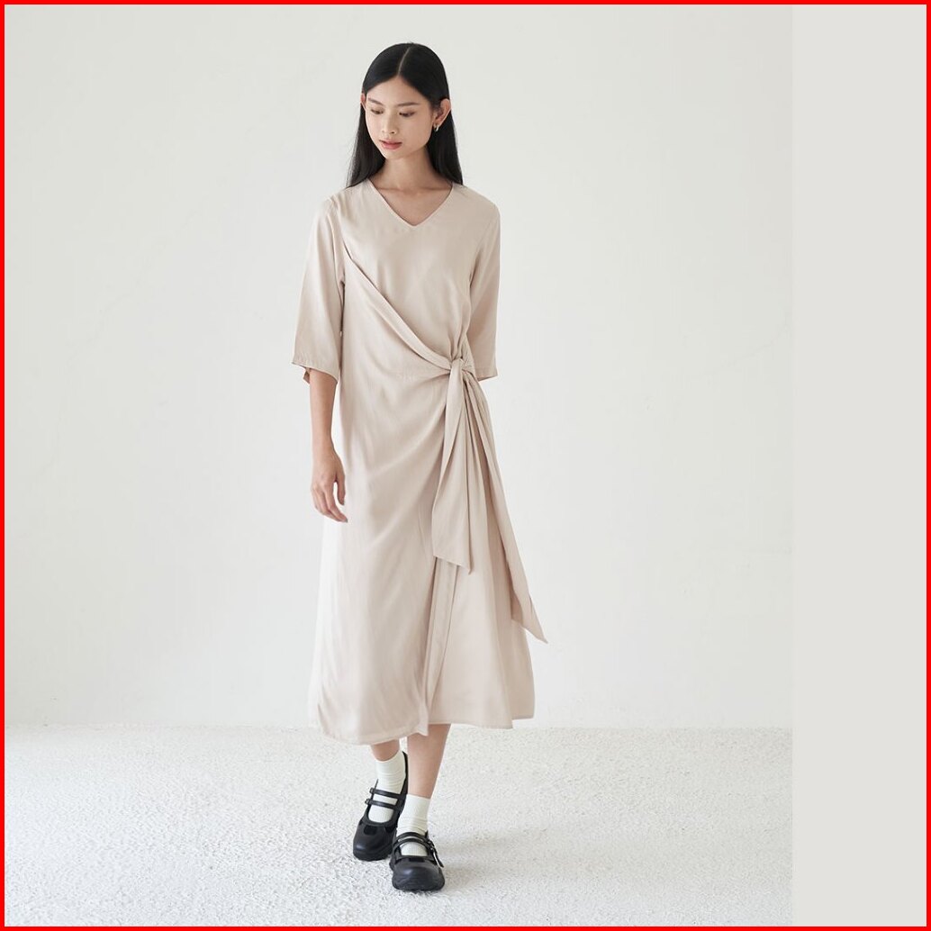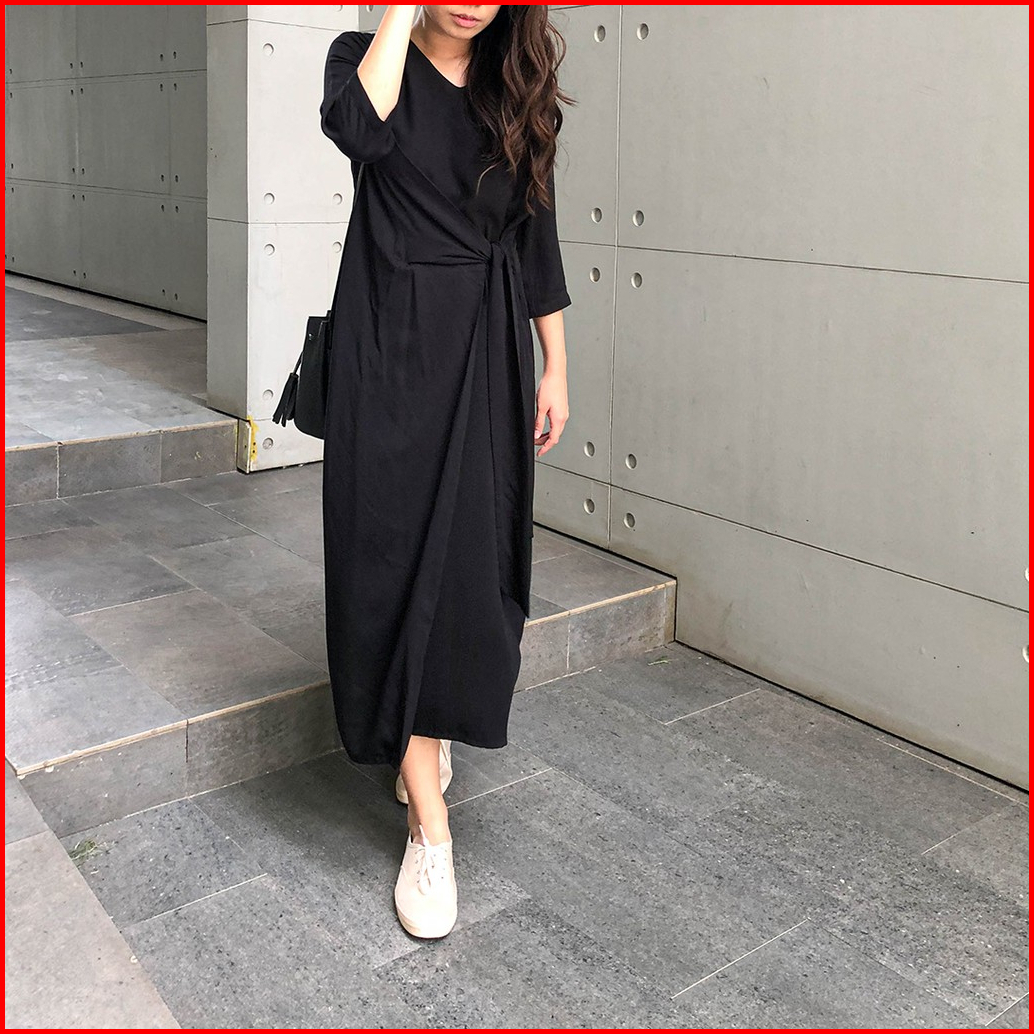 Inkano Gianna - Dress Rayon Dengan Details Ikat Warna Hitam Coklat Muda Hijau Olive Dan Soft Pink