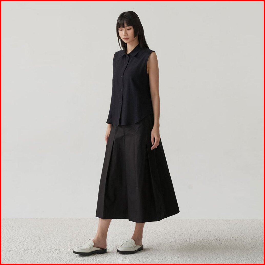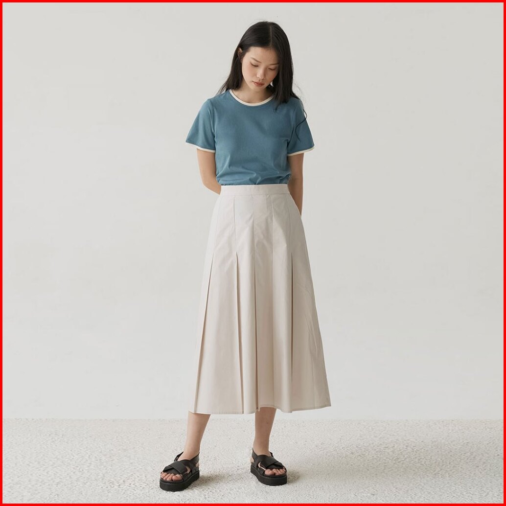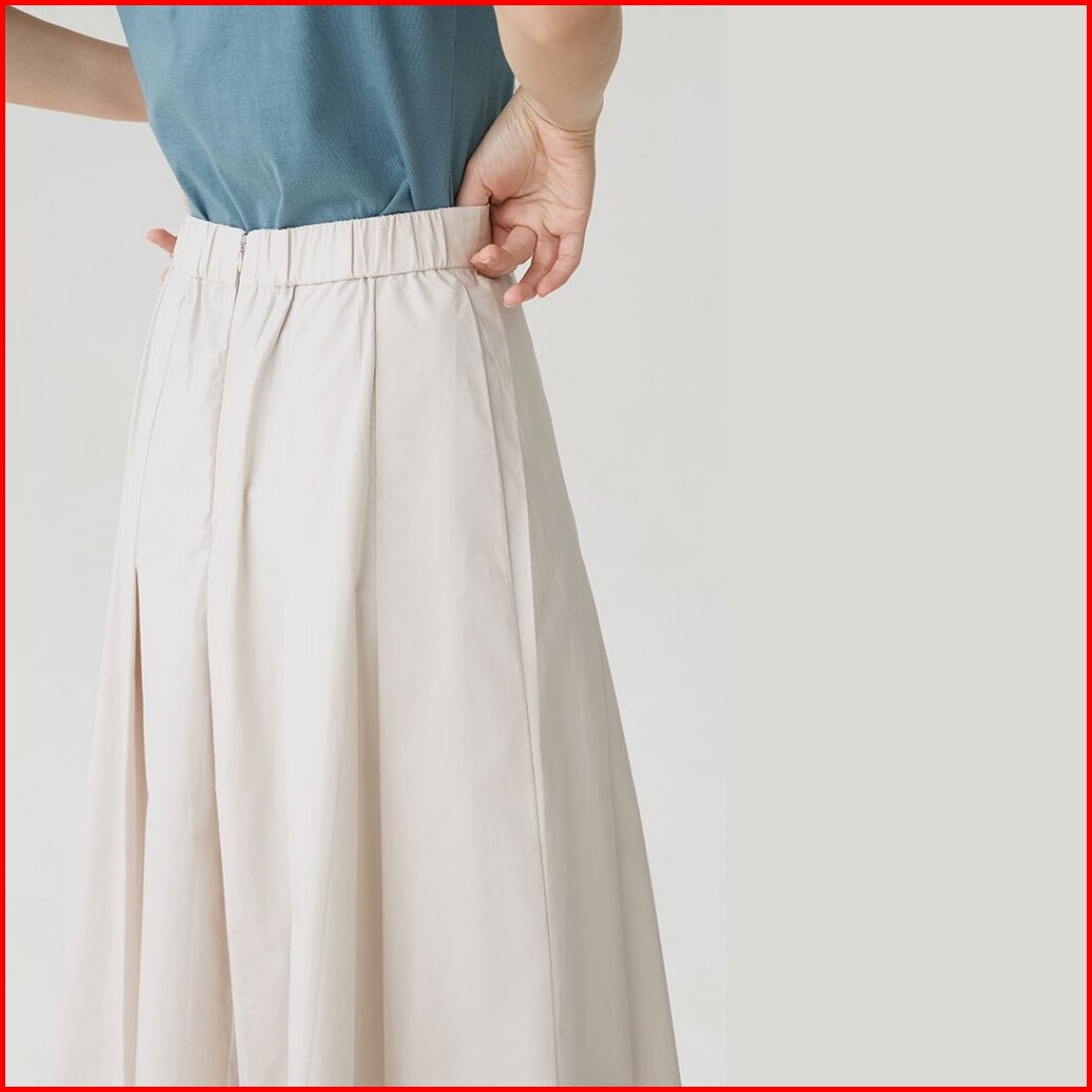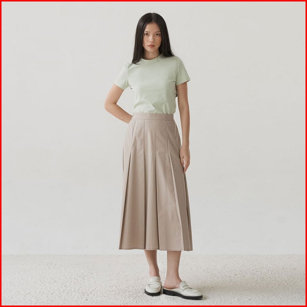 Inkano Surrey - Rok Midi Wanita Pleated Bahan Katun