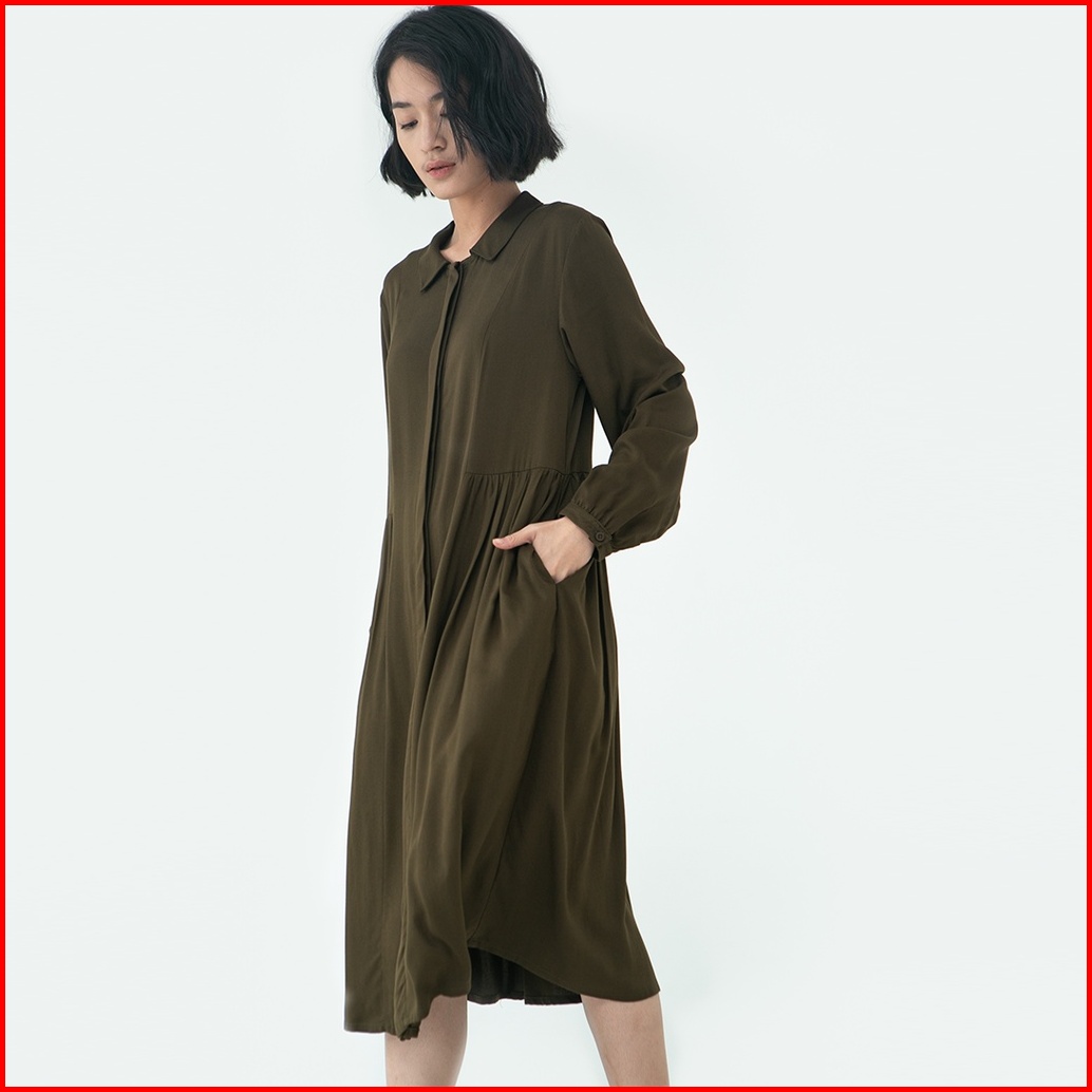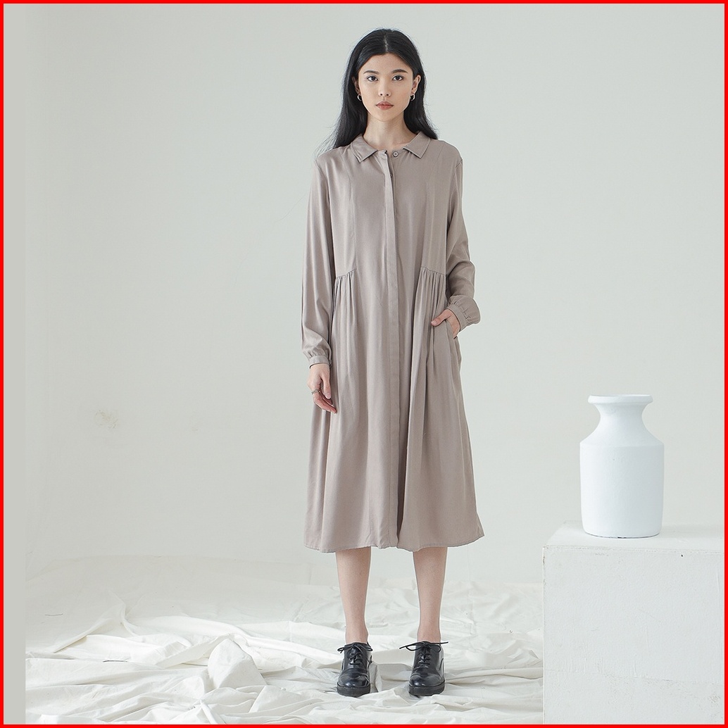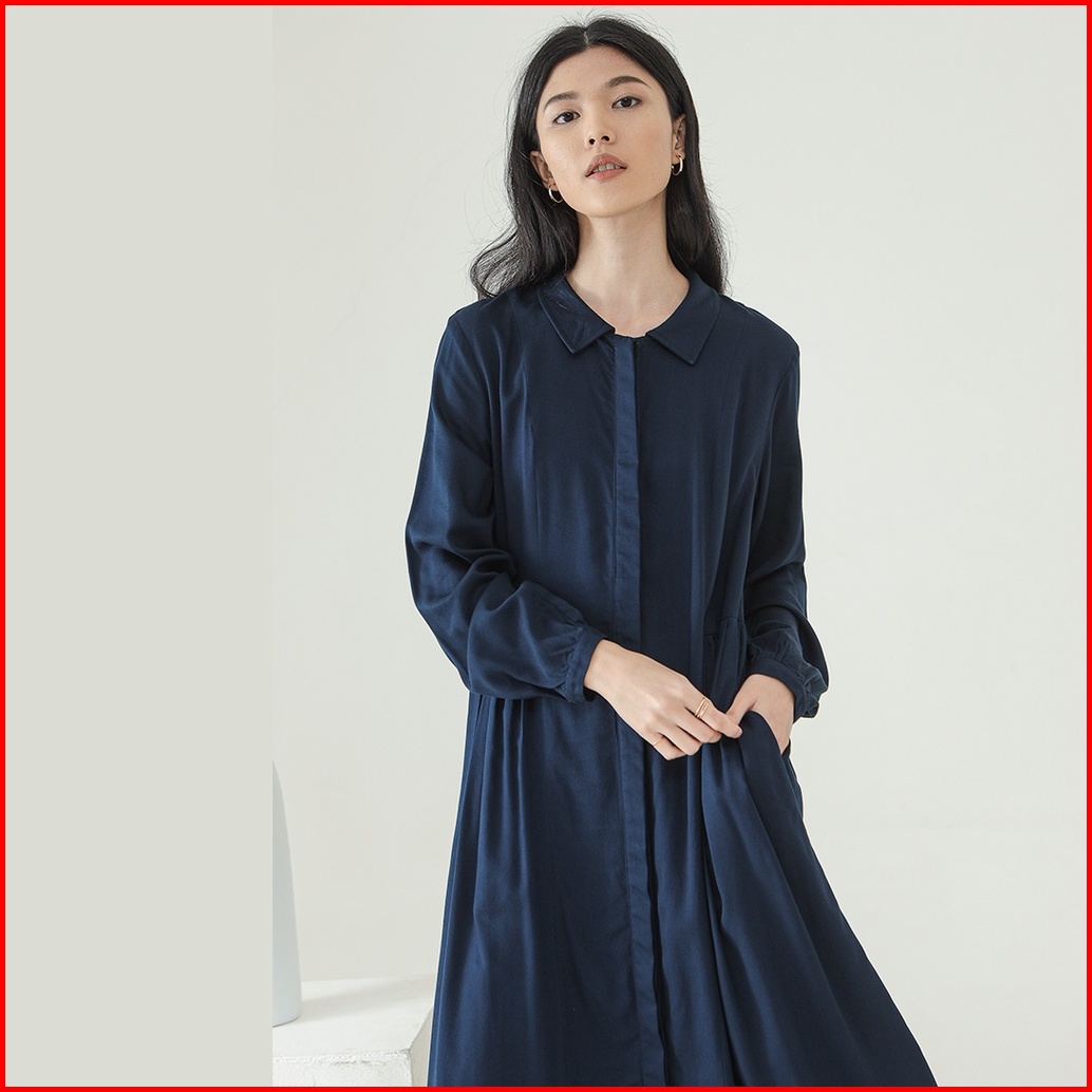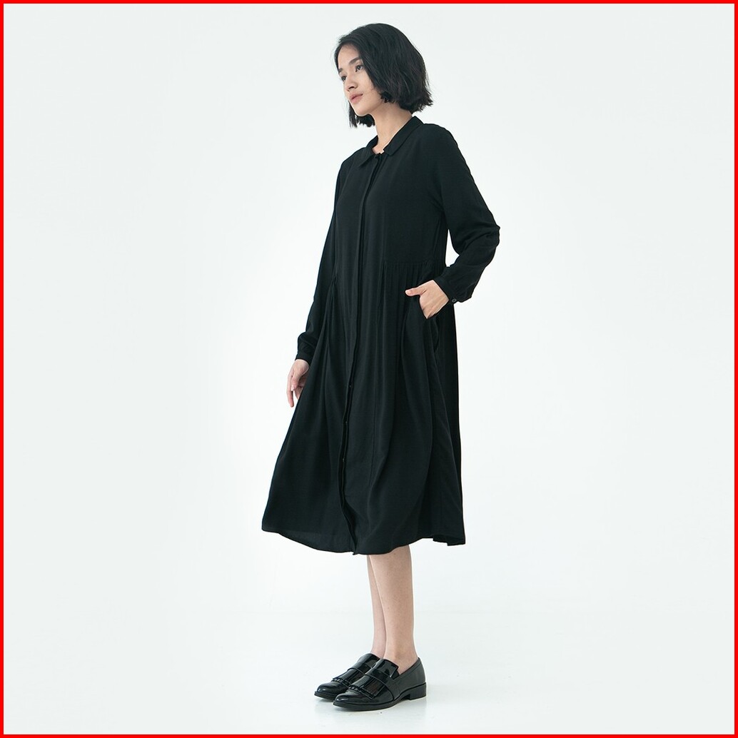 Inkano Beth - Midi Dress Wanita Bahan Rayon Lengan Panjang Full Kancing Dan Busui Friendly Warna Dusty Blue Latte Hitam