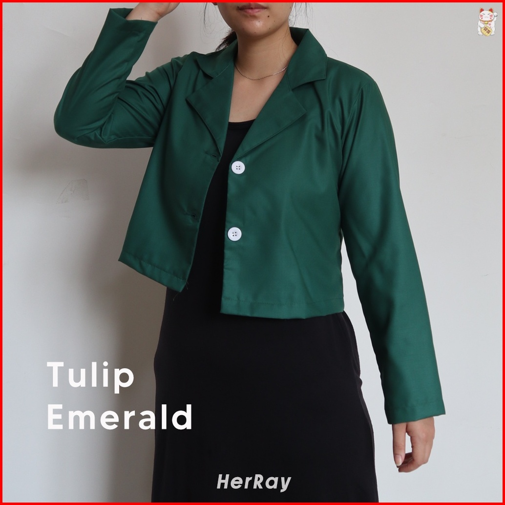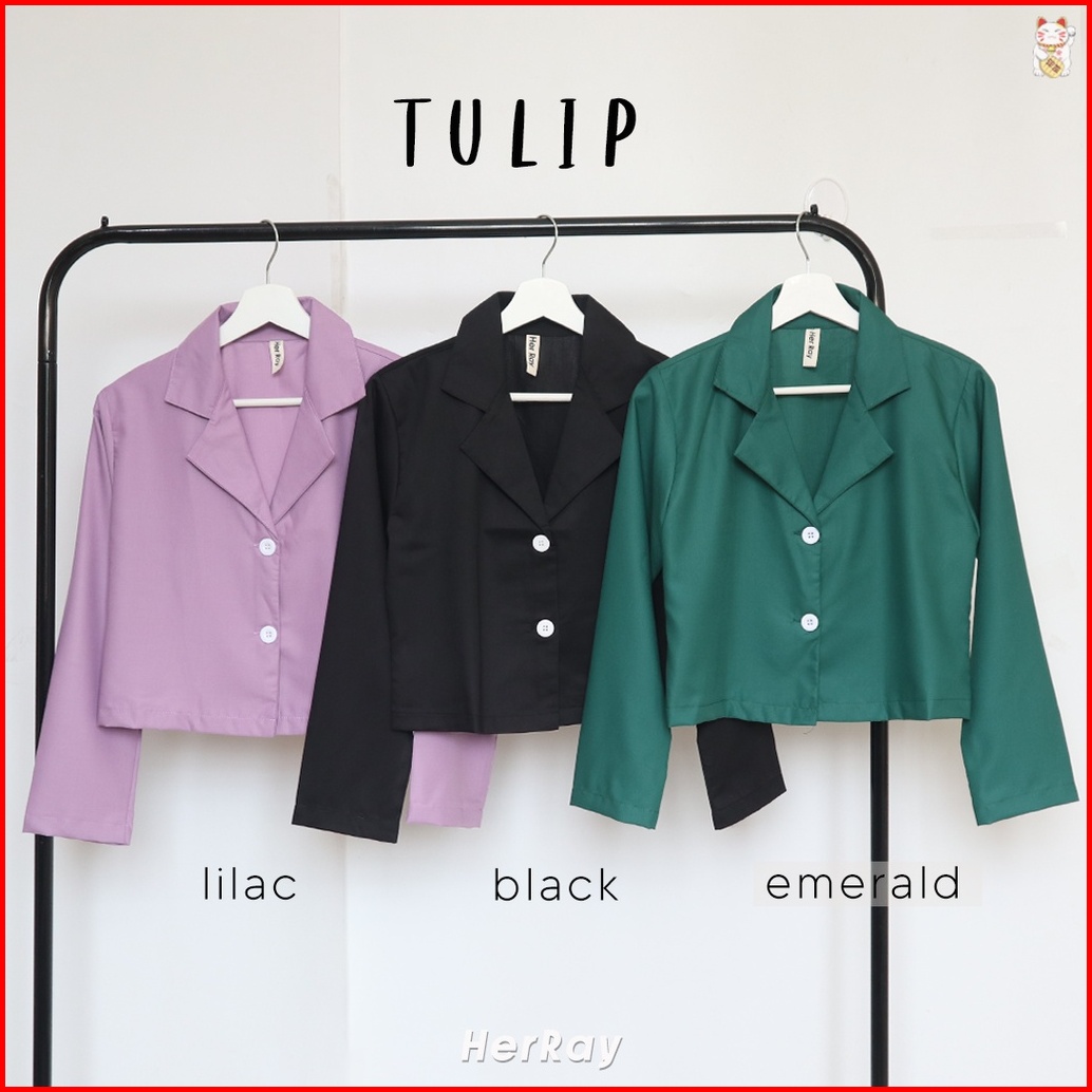 Tulip Crop Outer Blazer Katun Warna Variatif