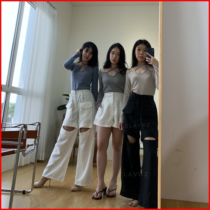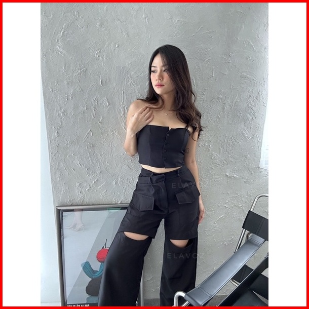 Elavoz Darja Cargo Cut Off Pants Bawahan Wanita Celana Panjang Celana Panjang