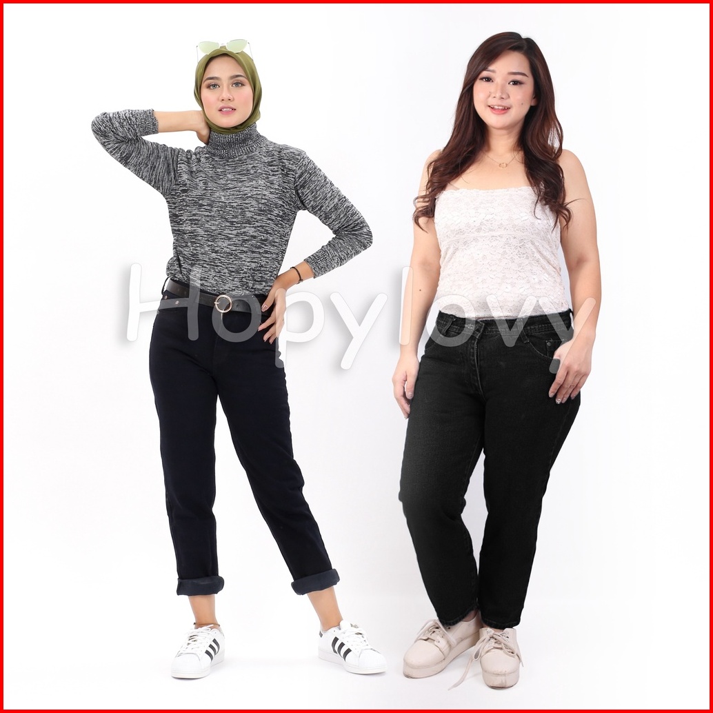 Hopylovy Celana Jeans Hitam Wanita Model Boyfriend Celana Boyfriend Jeans Wanita Hitam Daveena