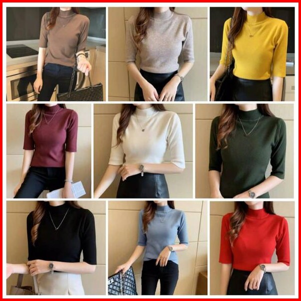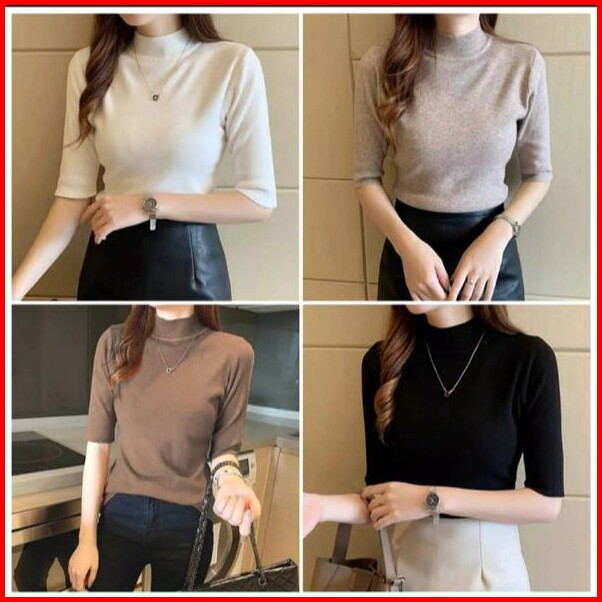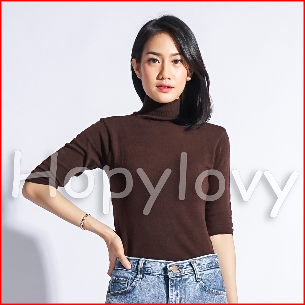 Hopylovy Blouse Rajut Turtleneck Wanita Lengan 3 Per 4 Rafika