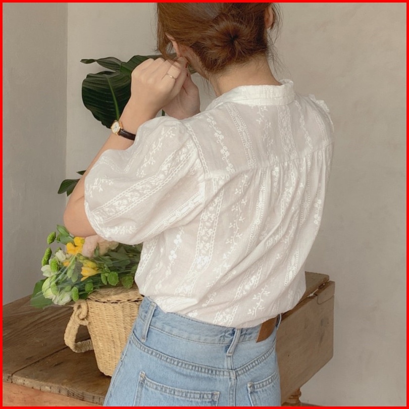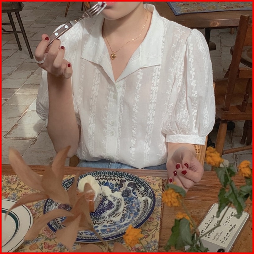 Kiana Atasan Blouse Wanita Renda Putih Korean Style