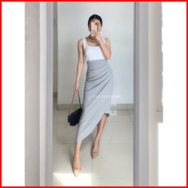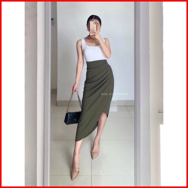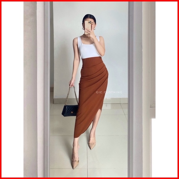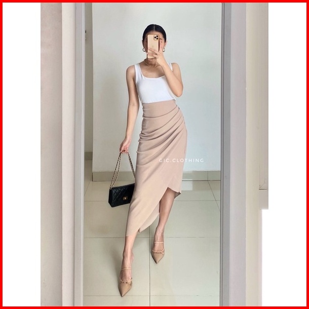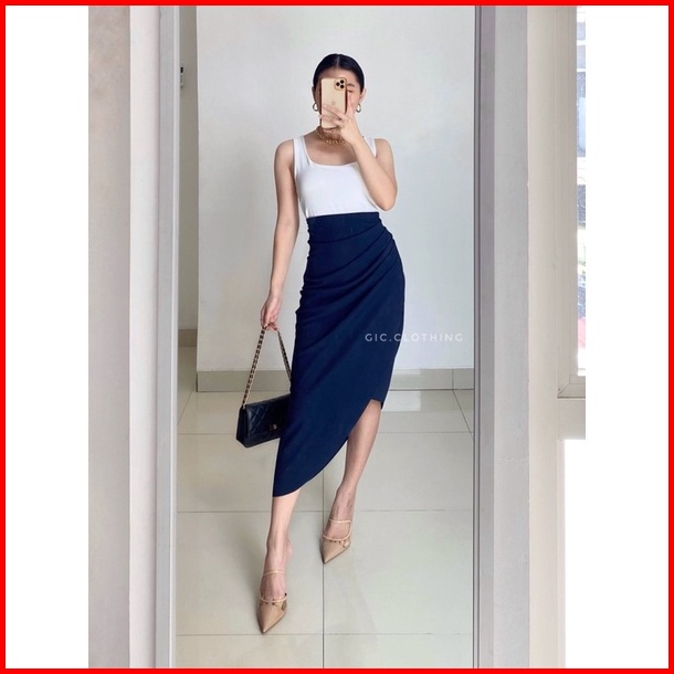 Gic Asymmetrical Skirt - Rok Midi Wanita Knit