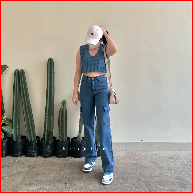 Boxofjeans - Cargo Hw Loose Jeans - Snow Blue