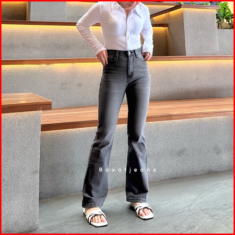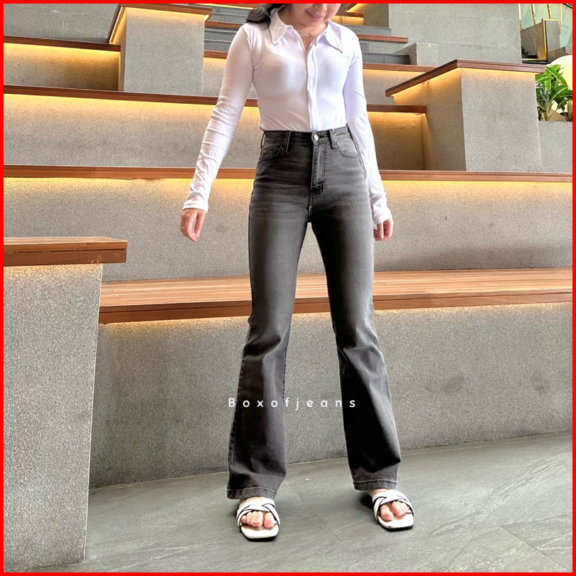 Boxofjeans - Hw Flared Cutbray Jeans - Whisker Grey