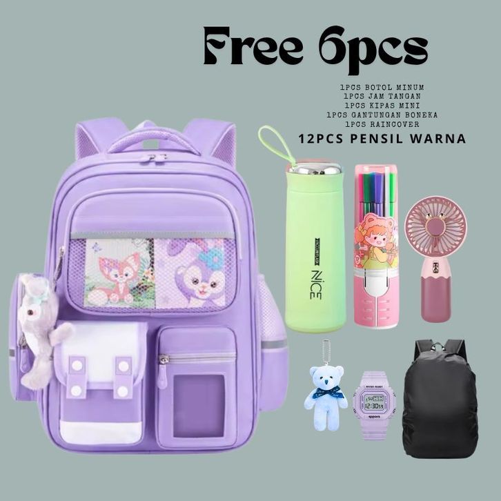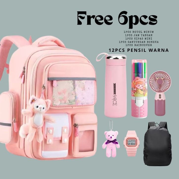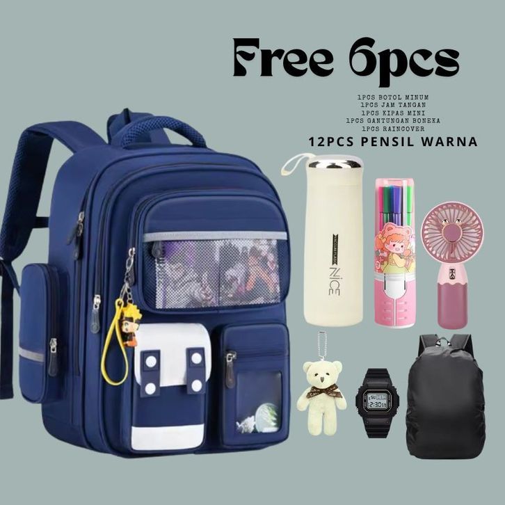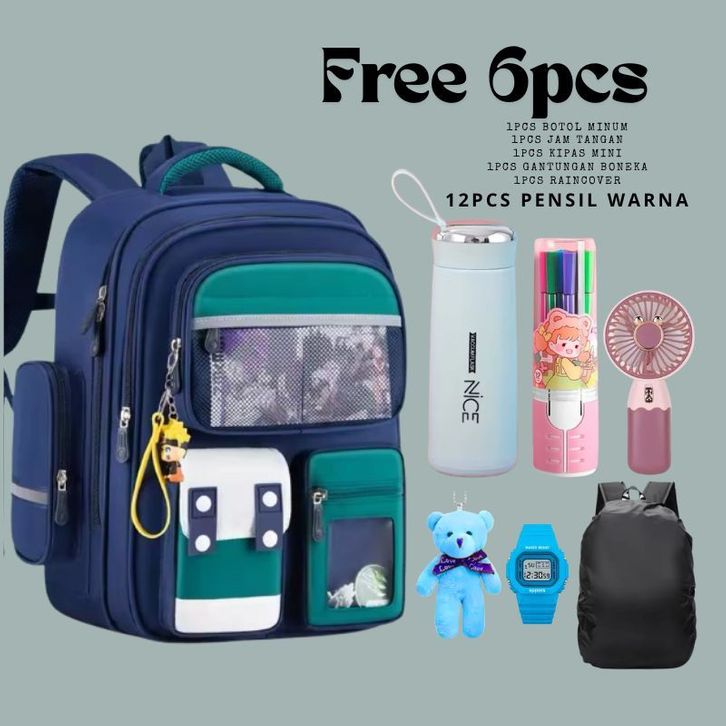 Ransel Siswa Anak SD SMP,Tas Sekolah Anak Laki Laki Ransel Anak Perempuan Tas Sekolah Anti Air Ransel Sekolah FREE 6pcs