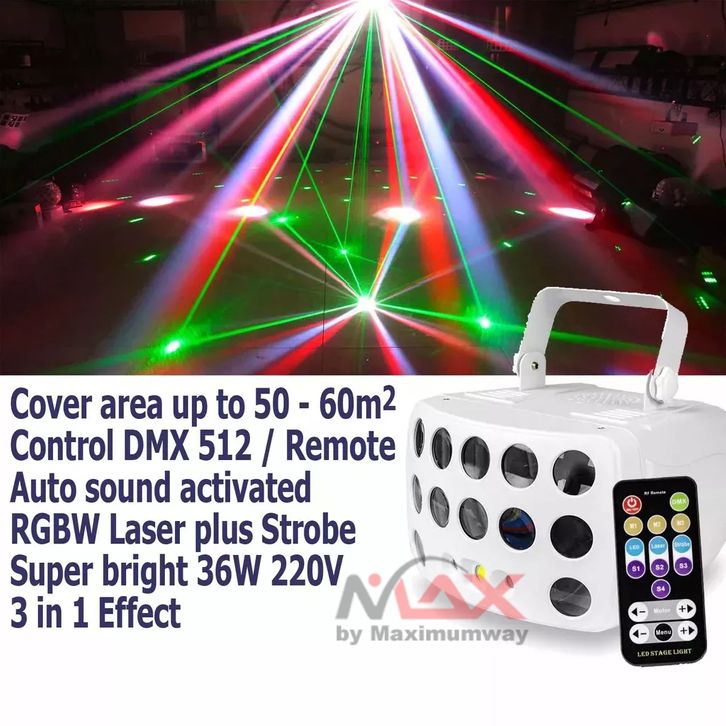ALIEN RGBW STOBE PLUS LASER AREA LUAS 50M2 INDOOR OUTDOOR SUPER TERANG LED DISCO LASER BISA