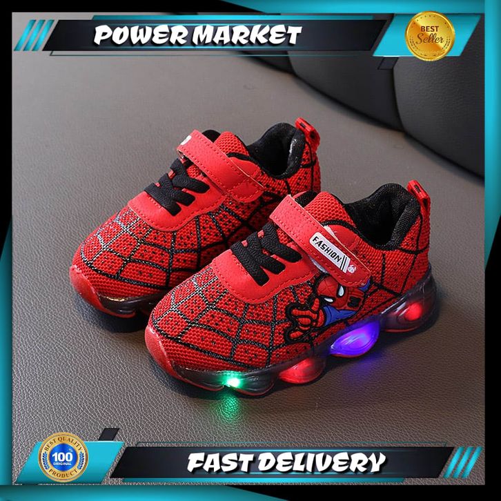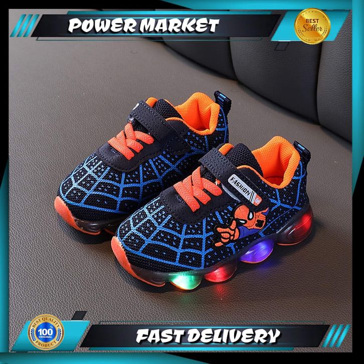 Happy Baby NEW sepatu sneakers IMPORT motif spiderman Lampu LED XZ021
