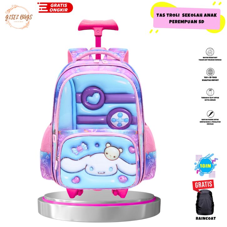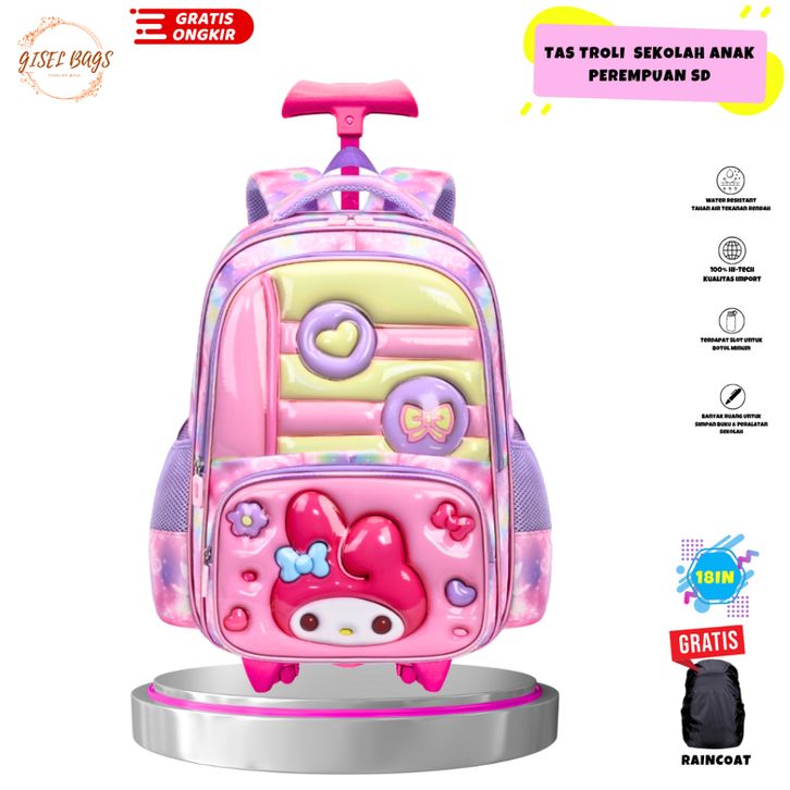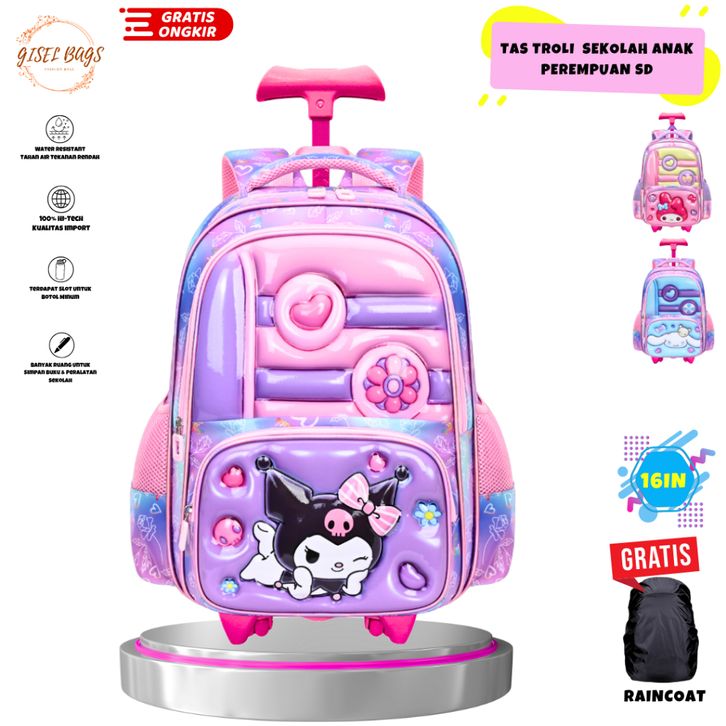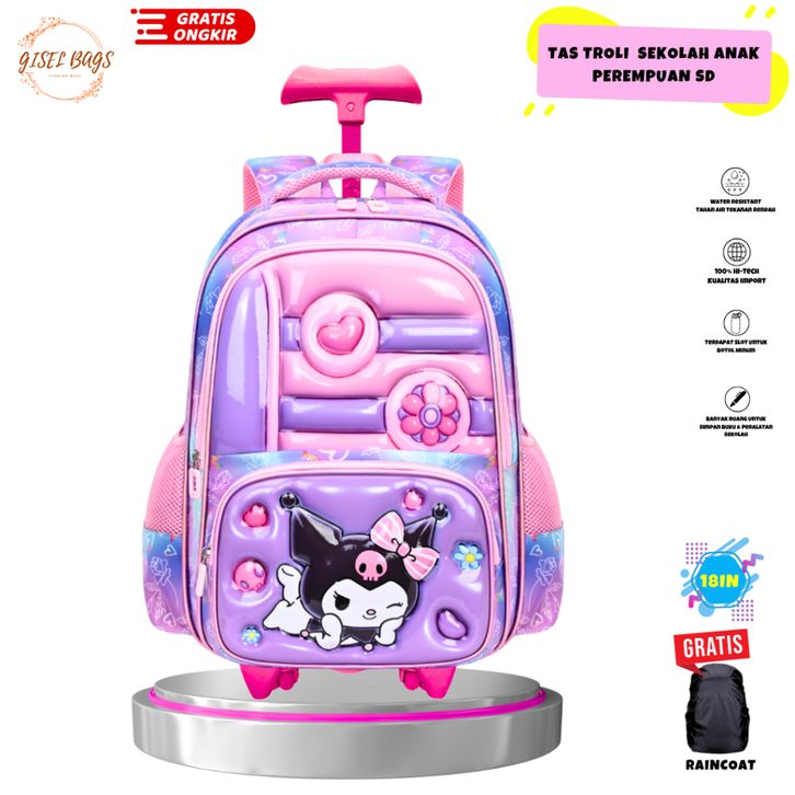 tas koper anak perempuan sd gambar embos kuromi ransel troli anti air new