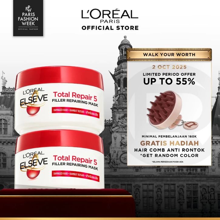 [Mall] Loreal Paris Official Store Total Repair 5 Hair Mask Hair Care 200ml Twinpack [Perawatan Rambut Rusak]