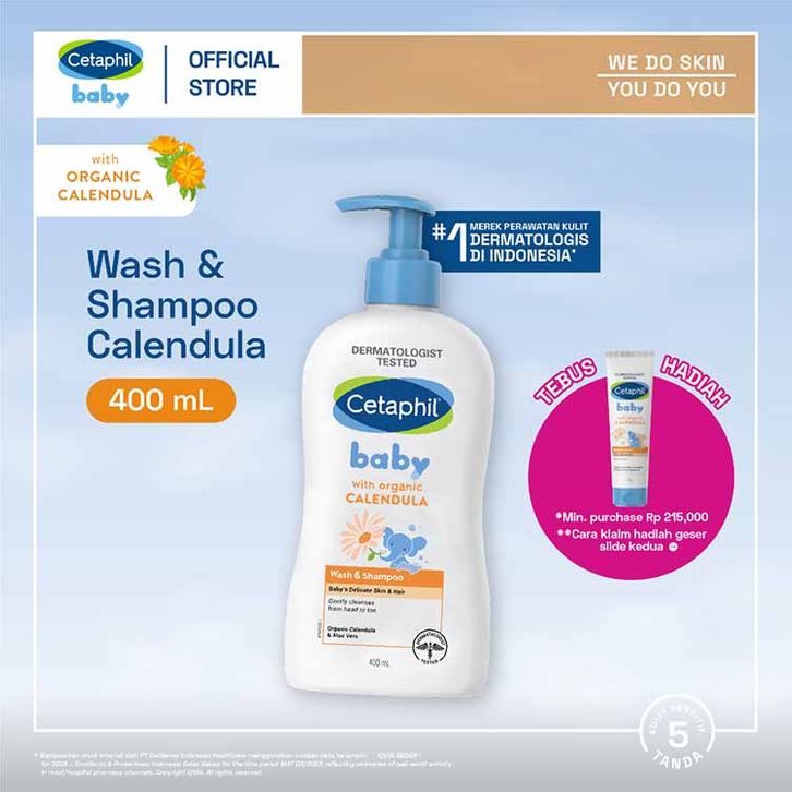 Cetaphil Baby Wash & Shampoo with Organic Calendula 400ml Sabun Mandi dan Shampo untuk Perawatan Kulit Bayi Sensitif