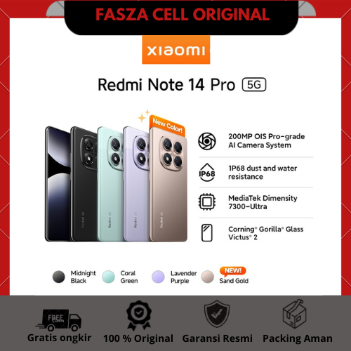 Handphone Xiaomi Redmi Note 14 Pro 5G | 200MP OIS Pro-grade AI Camera System | IP68 | MediaTek Dimensity 7300 Ultra | Co