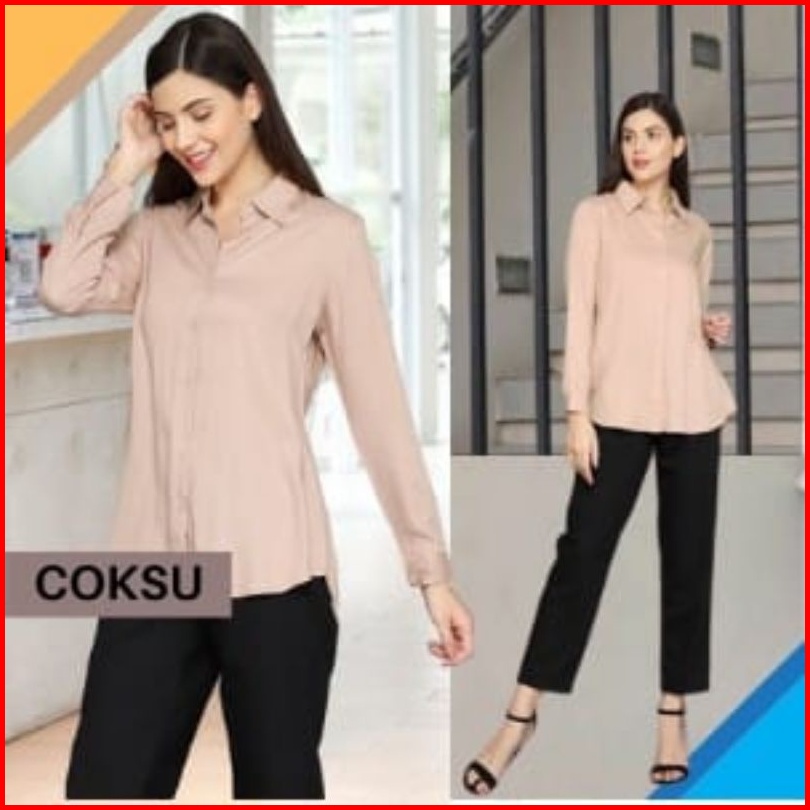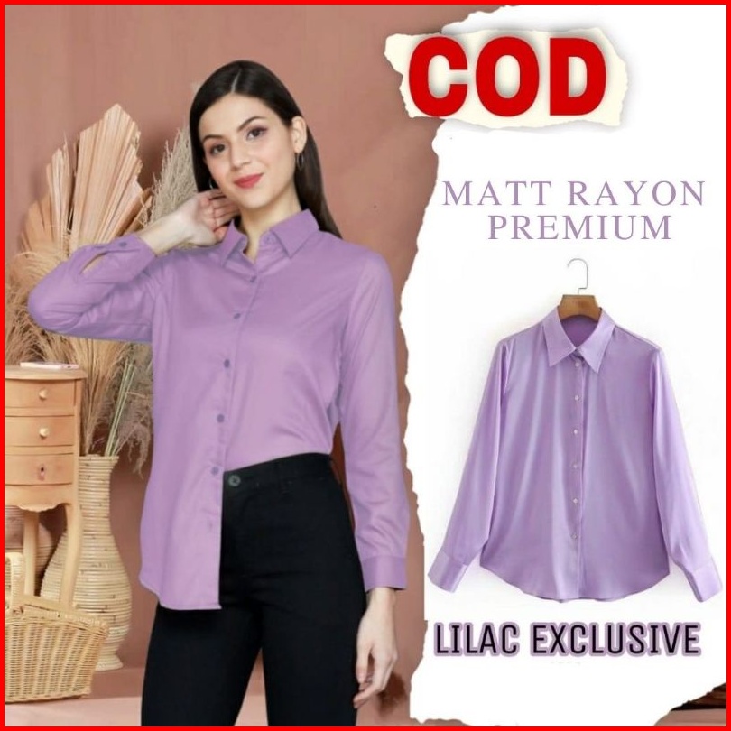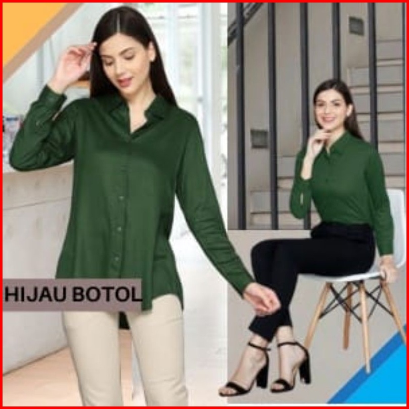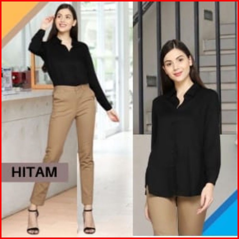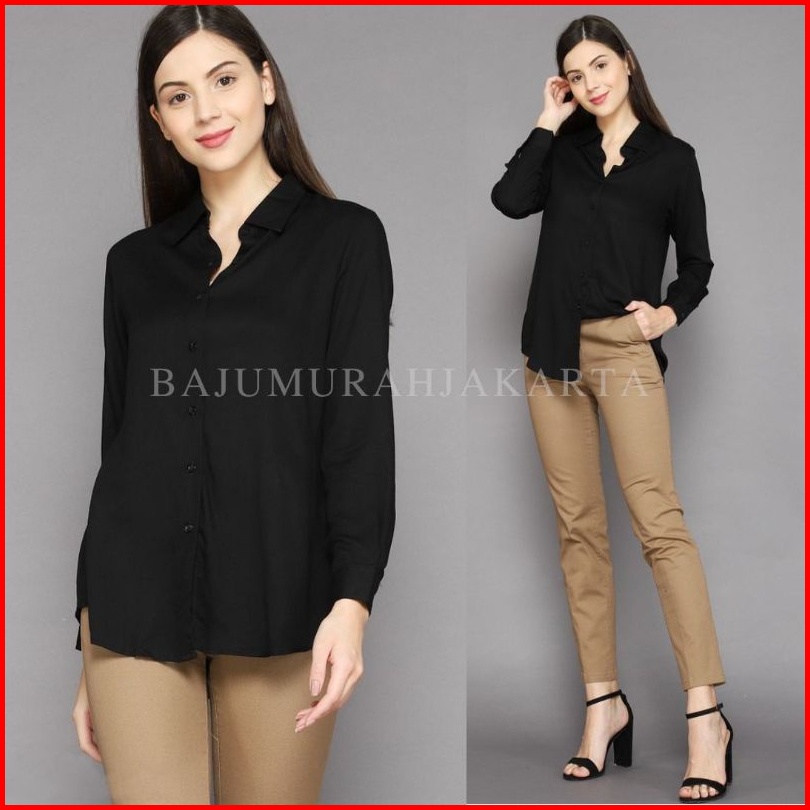 Kemeja Wanita Katun Rayon Hitam Lengan Panjang Blouse Casual Polos Monalisa Kekinian Baju Cewek