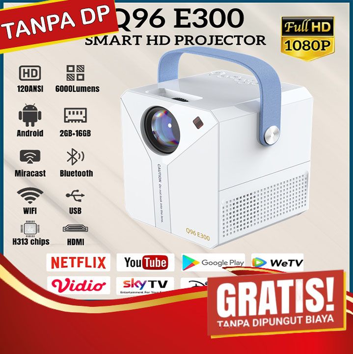 MODERN Q96 E300 Proyektor Android TV 1080P Smart Projector 6000 lumens Android 9.0 Mini Portable HP Home Theater Home Pr