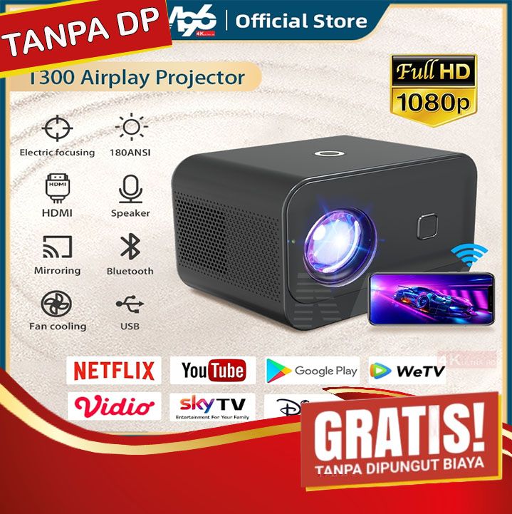 T300 Airplay Proyektor 180ANSI Lumens Projector Smart Home Theatre 1080P Full HD Laptop Proyektor
