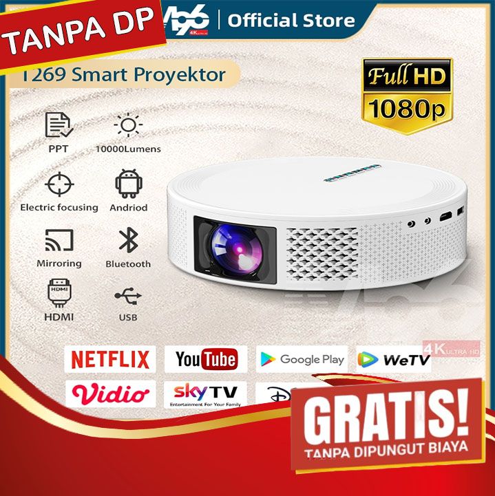 MODERN T269 Smart Projector Android OS 450ANSI 10000 Lumens 1080P HD Portable Android TV Proyektor
