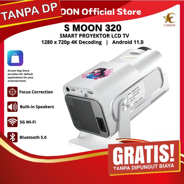 MODERN SMOON320 SMART PROYEKTOR LCD TV - INCLUDE HDMI - GOOGLE STORE - ANDROID - NETFLIX - YOUTUBE - WIFI - 220ANSI