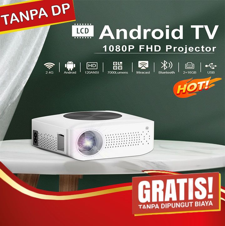 MODERN EYESEC Proyektor Mini Android TV 1080P Smart Projector 7000 Lumen 2G RAM 16G ROM Home Theater Pr