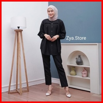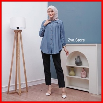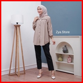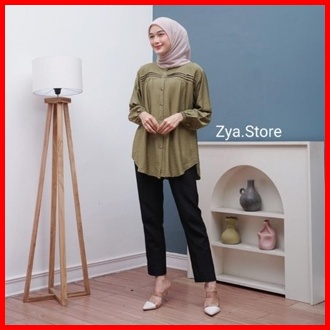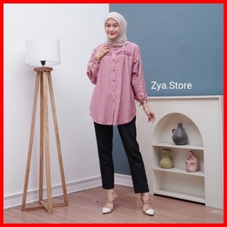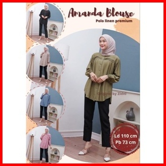 Kemeja Atasan Wanita Jumbo Polos Pakaian Wanita Kekinian Amanda Blouse Kemeja Polos Polo Linen