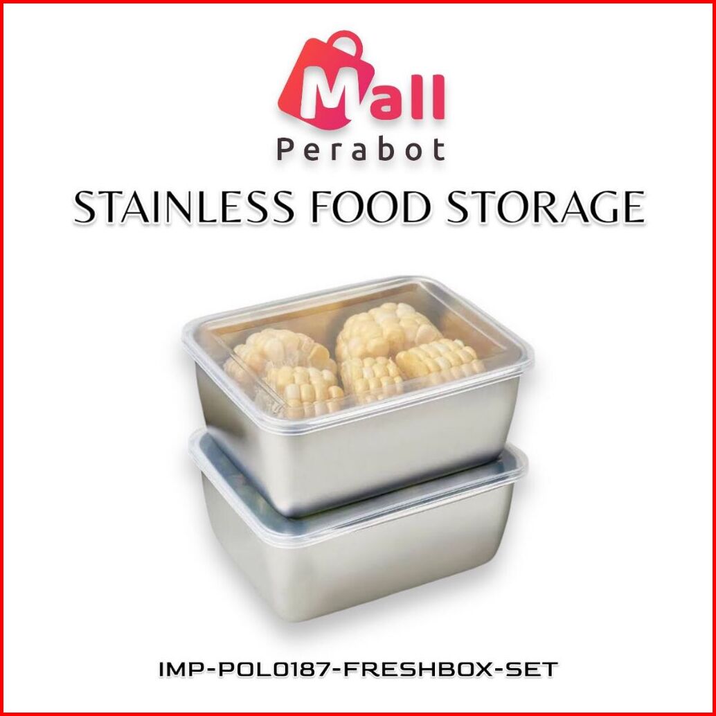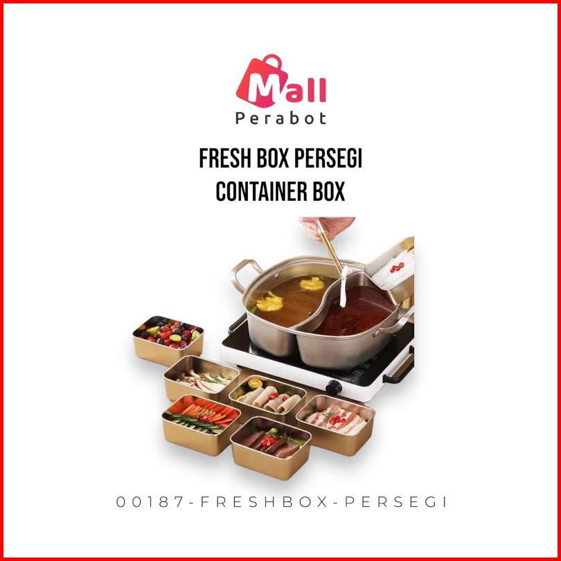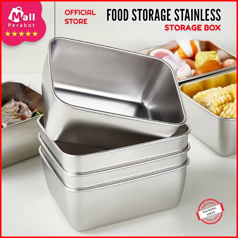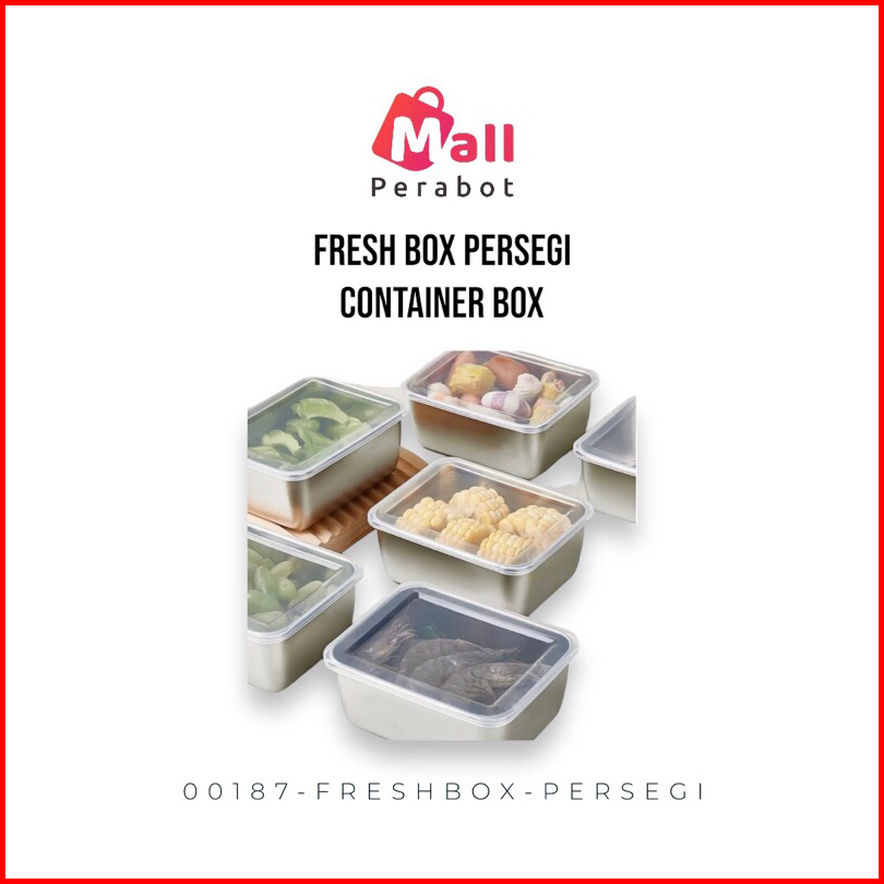 Mall Perabot Toples Fresh Box Persegi Kotak Buah Tempat Makan Stainless Tutup Plastik Penyimpanan Bento Gaya Ringan Deng