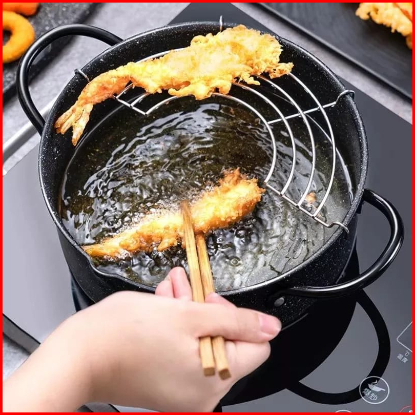 Wajan Penggorengan Deep Fryer Dengan Rak Tirisan 20 Cm Panci Wajan Penggoreng