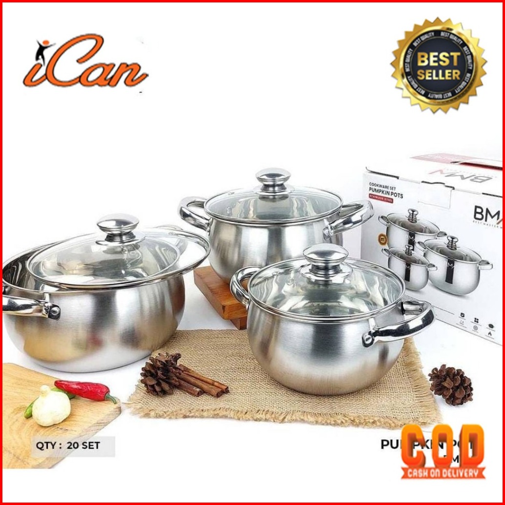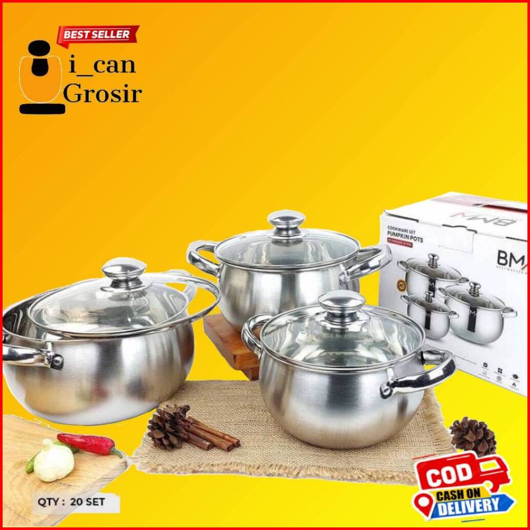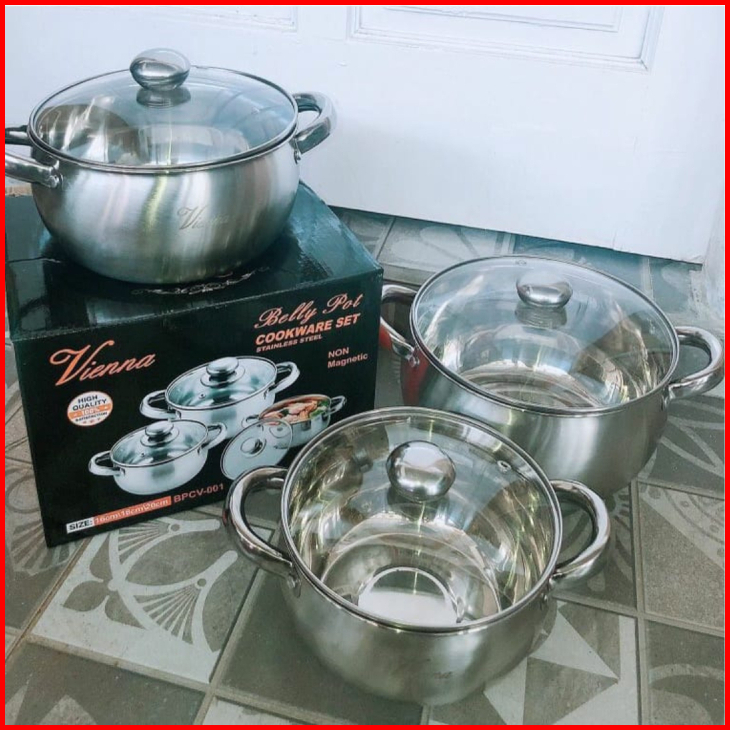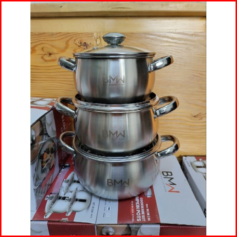 Panci Labu Bmw Vienna Set 3pcs 16cm 18cm 20cm Tutup Kaca Stainless Steel Anti Karat Panci Happy Bird Soup Pot 22 24 26cm