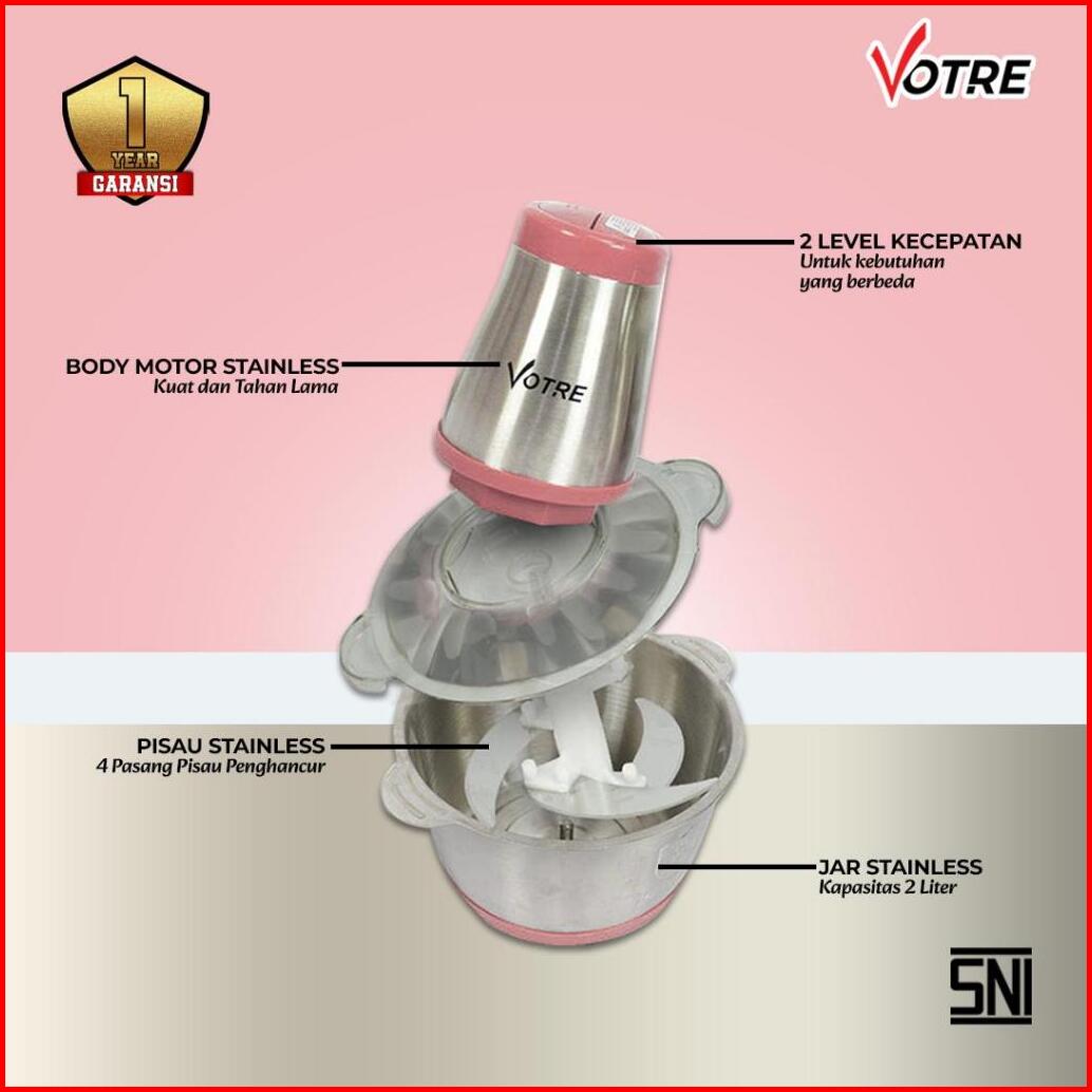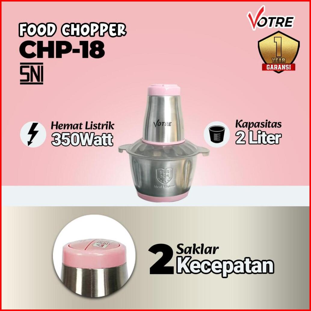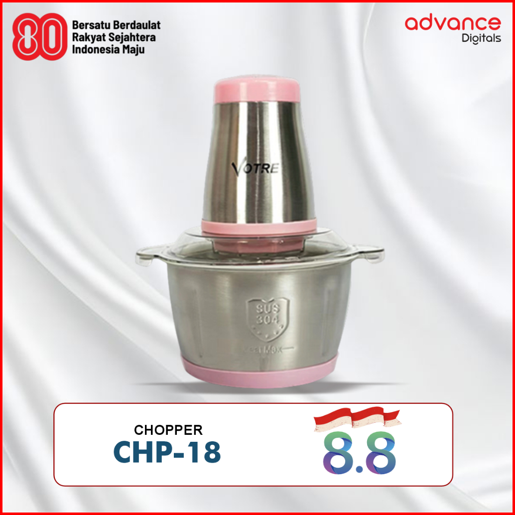 Food Chopper Blender Chp18 Penggiling Daging Listrik Dengan Wadah Tabung Stainless Kapasitas 2.l Dan 4 Pisau Stainless