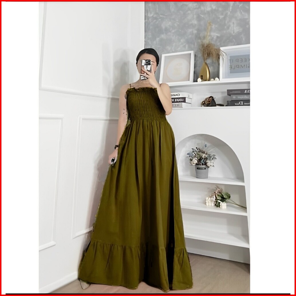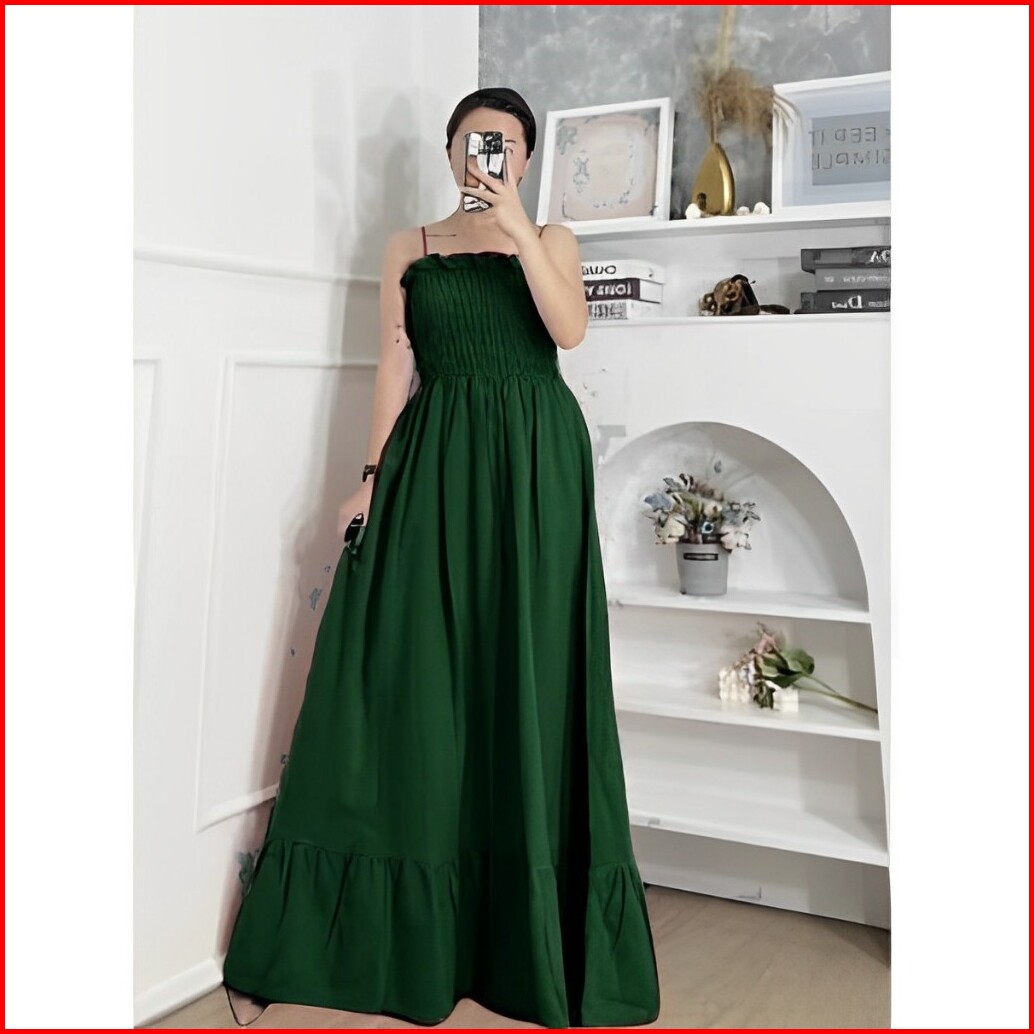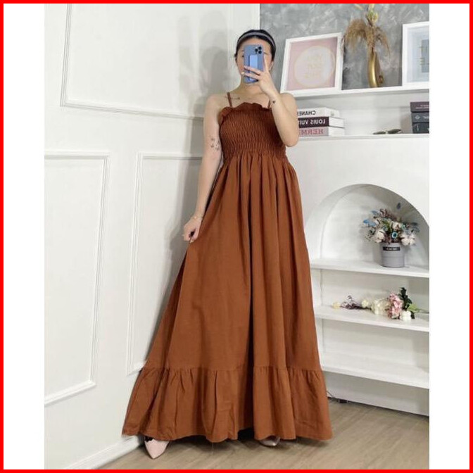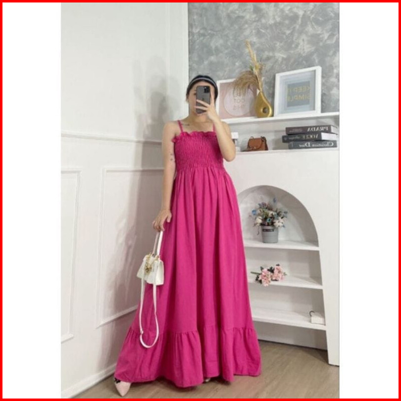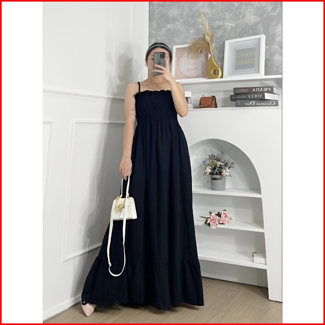 Korean Dress Polos Dress Kerut Tali Dress Smoke Panjang Crincle Air Flow