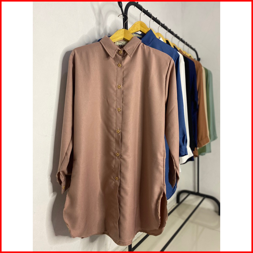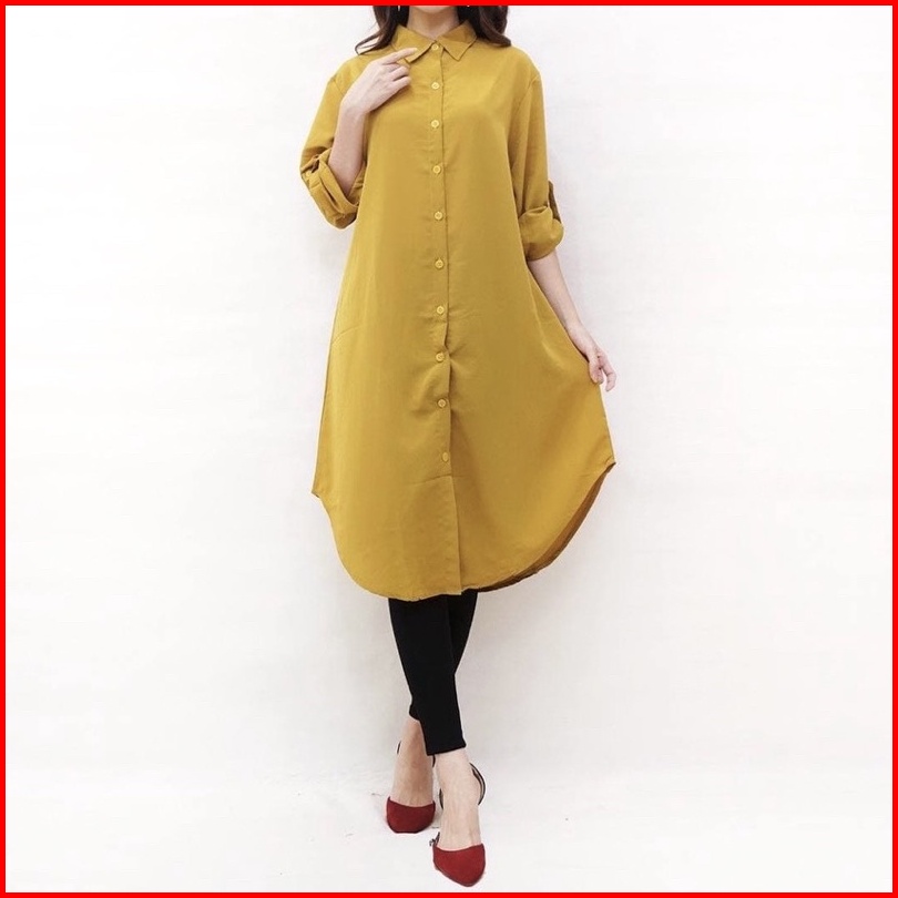 Zn1 - Baju Long Dress Kemeja Tunik Wanita Hitam Putih Polos Jumbo Casual Kasual Shakila Shirt