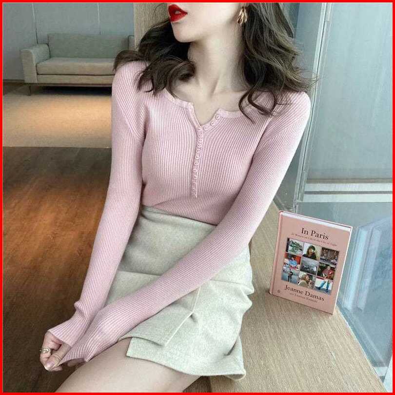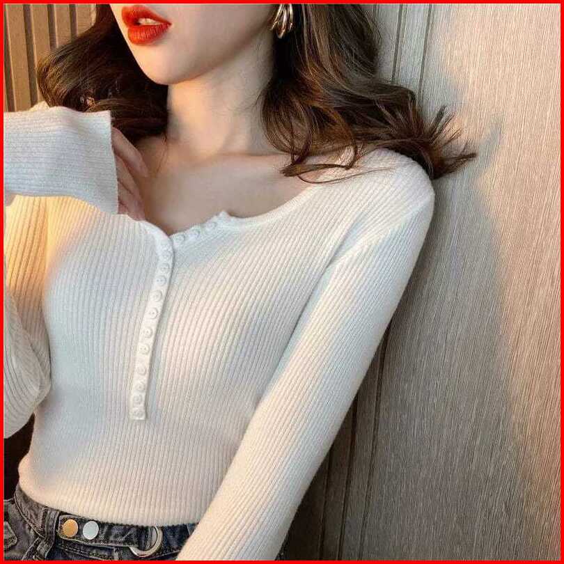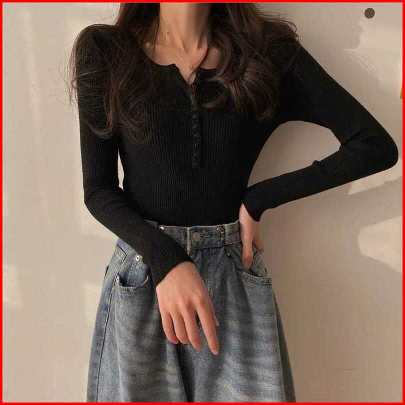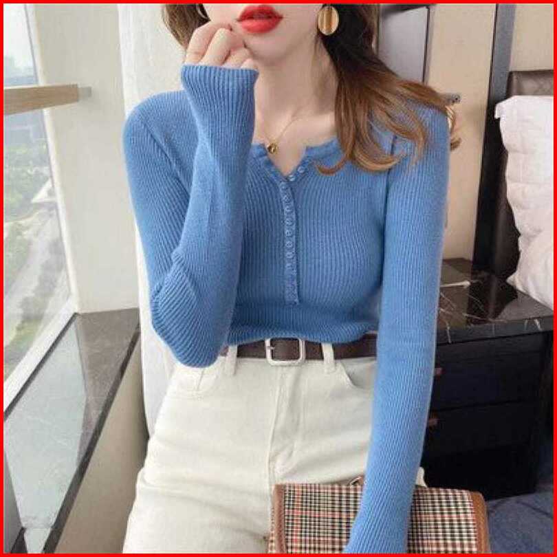 Queenbags89 Baju Outfit Cewek Baju Atasan Wanita Baju Rajut Eunii Kancing Mati Premium