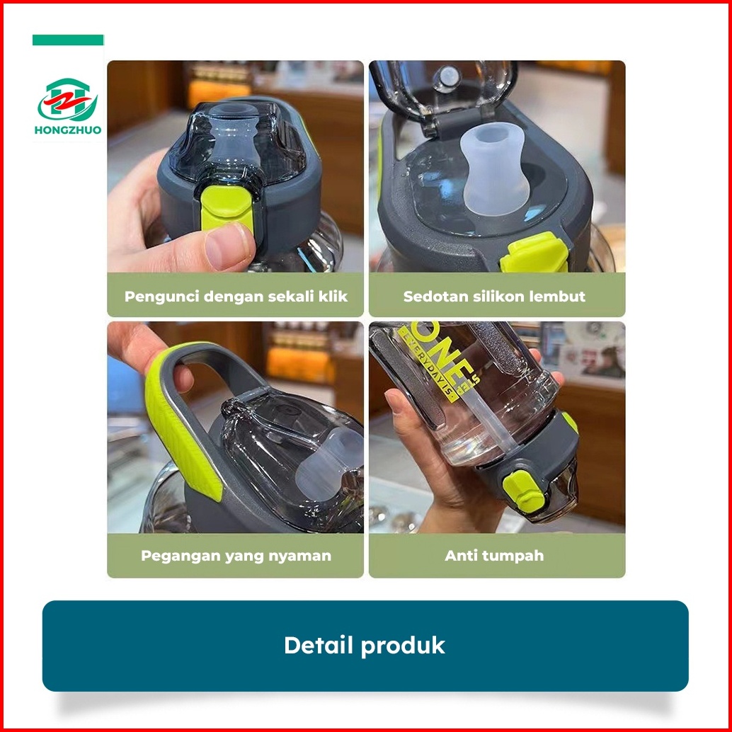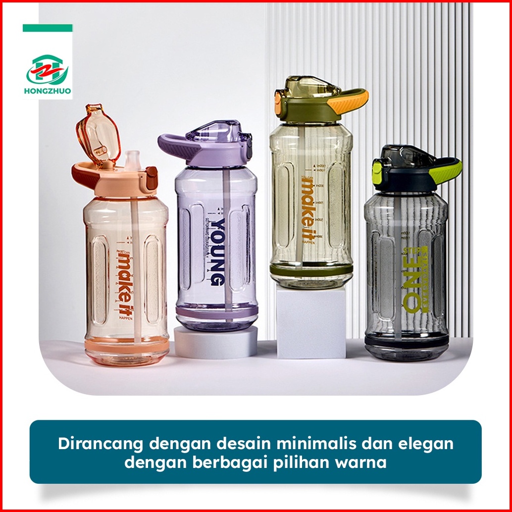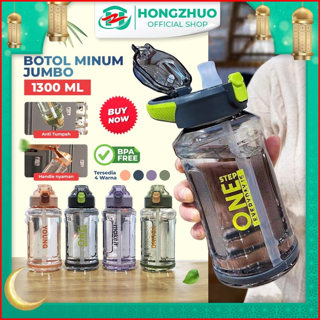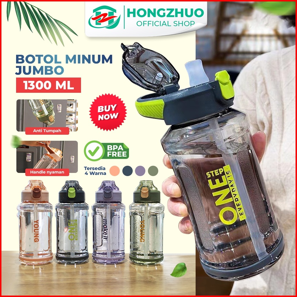 Hongzhuo Botol Minum Sport Jumbo Dilengkapi Sedotan Anti Tumpah Kapasitas 1300ml Tempat Minum Flip On Bpa Free