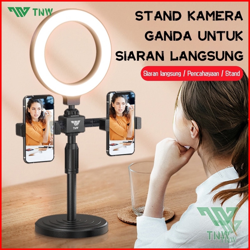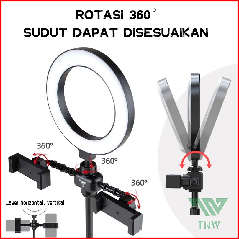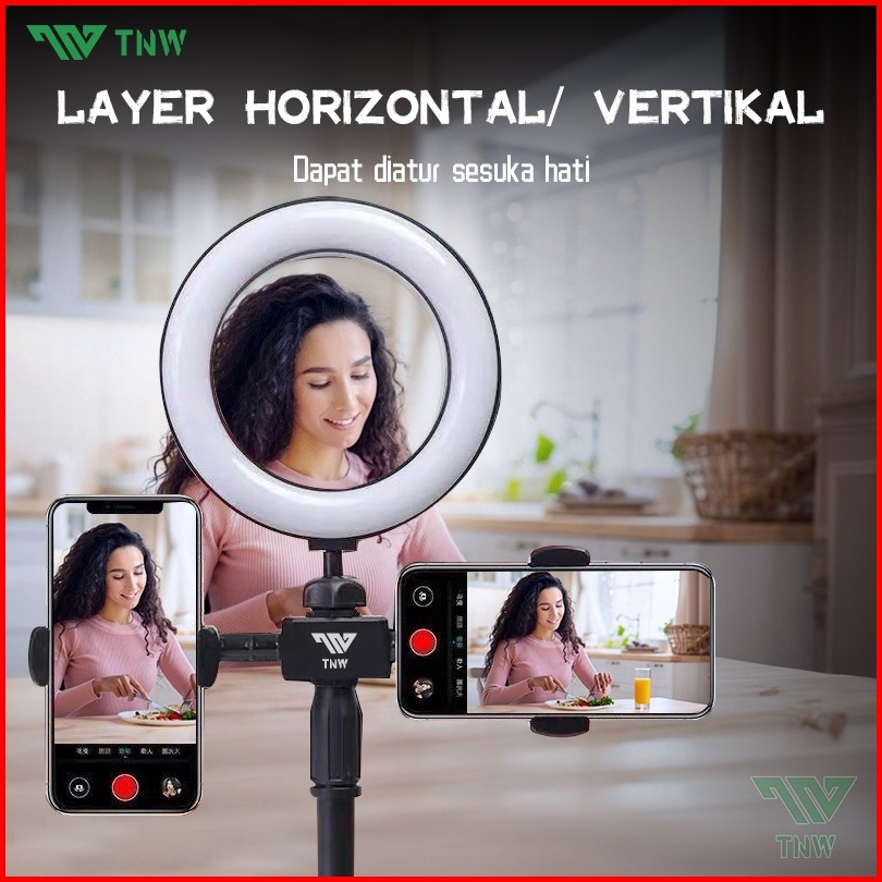Tnw Ring Light 16cm Tripod 2 Holder Hp Ring Light Tripod Mini Stand Hp Stream Selfie Make Up Vlog Lampu