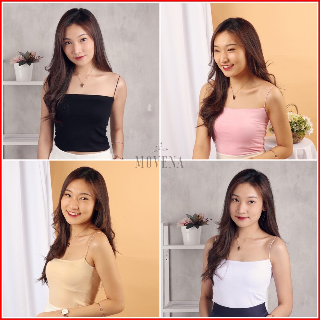 Tank Top Wanita Spandex Basic Tali Kecil Spaghetti Strap Atasan Crop Korean Style