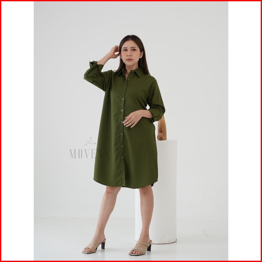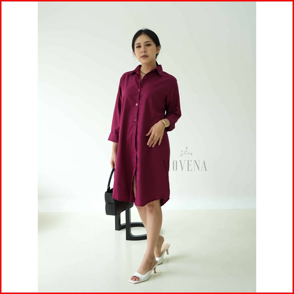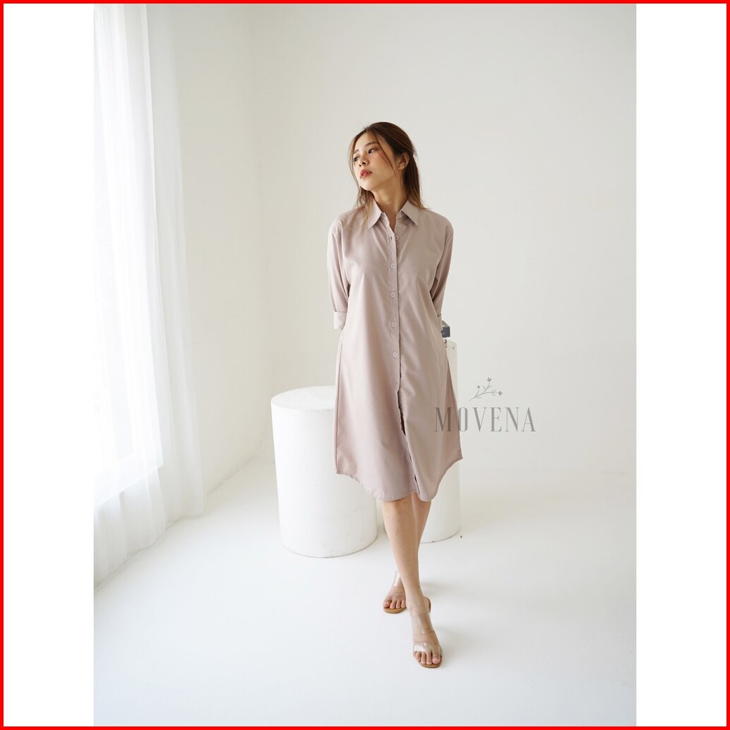 Dress Kemeja Tunik Wanita Lengan Panjang Basic Cotton Shirt Dress