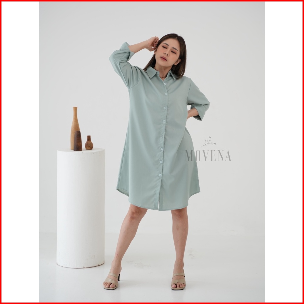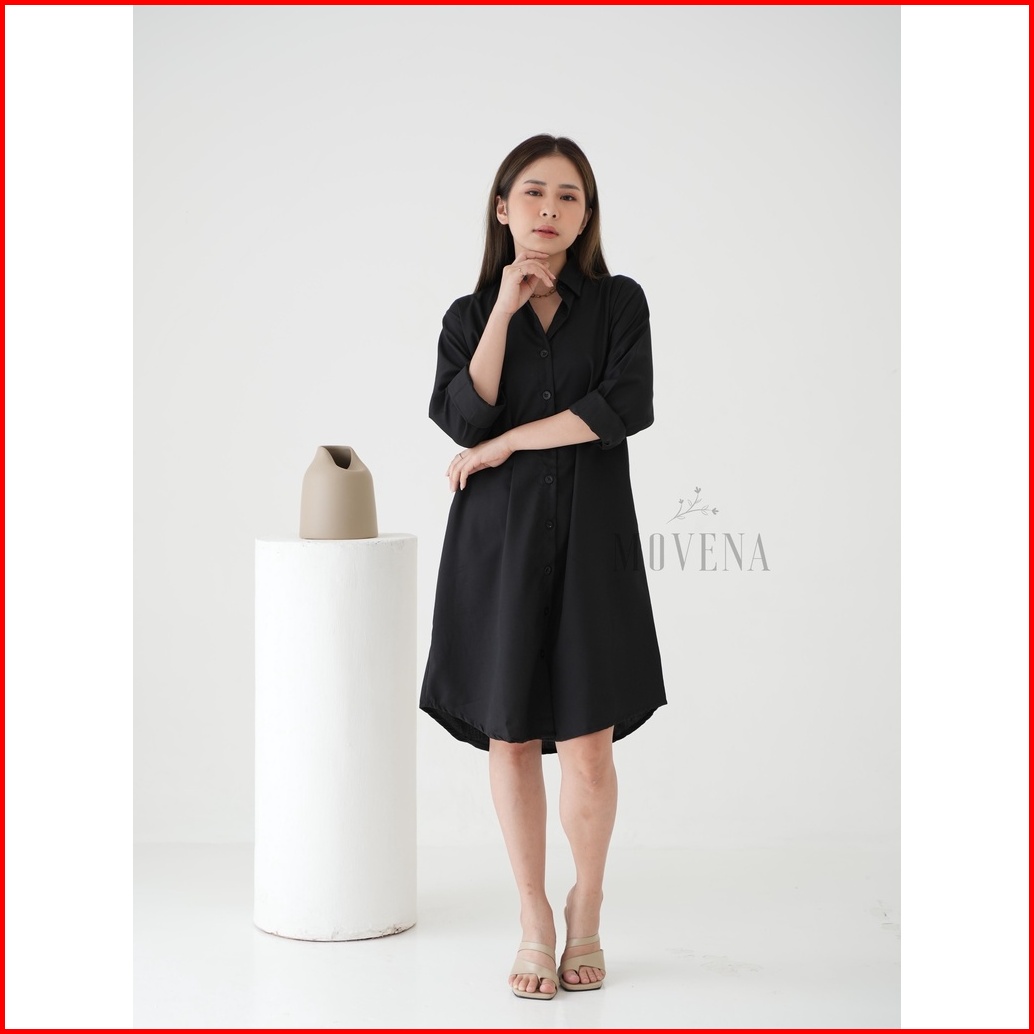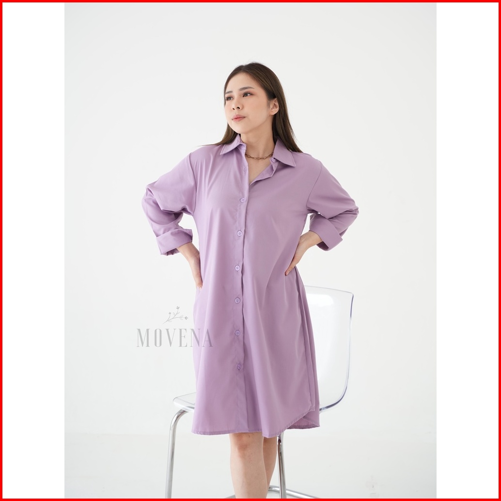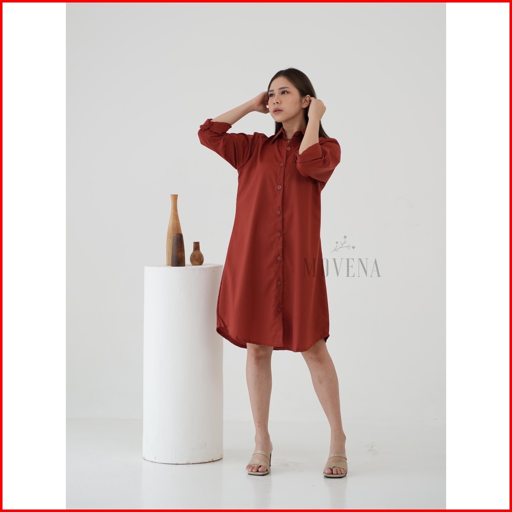 Dress Kemeja Tunik Wanita Lengan Panjang Basic Cotton Shirt Dress