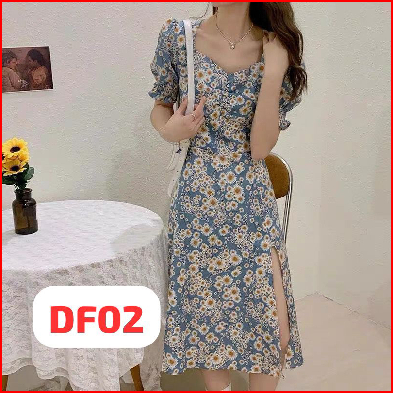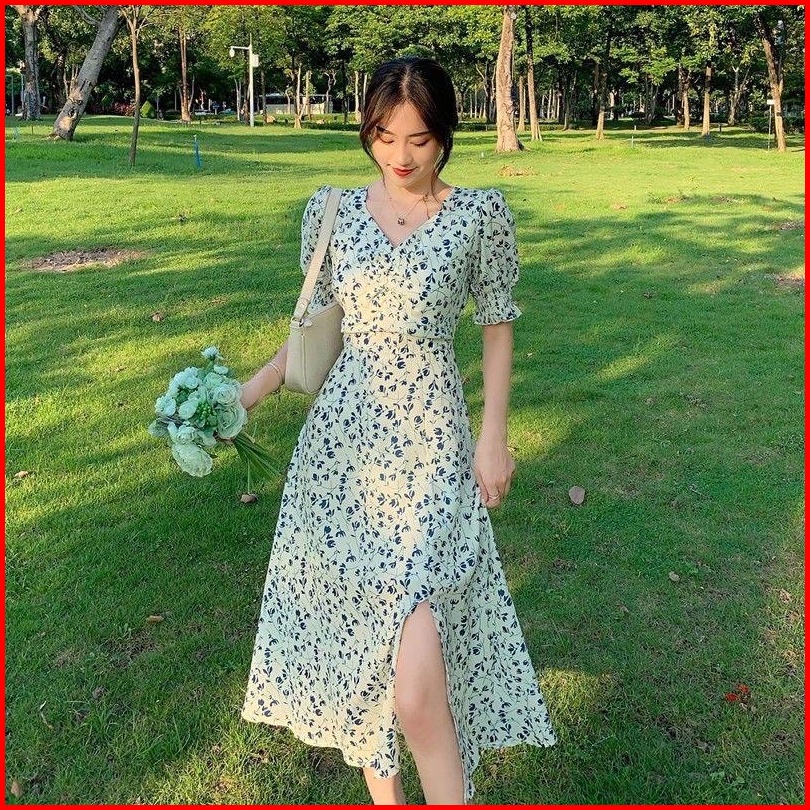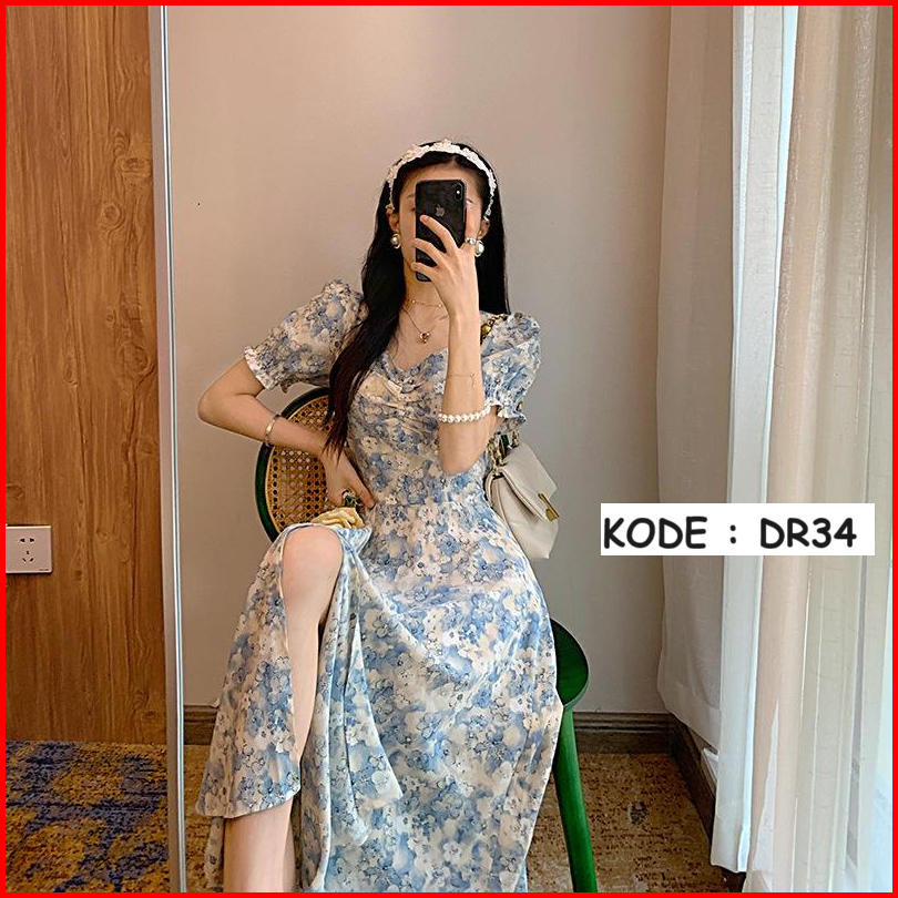 Dress Bunga Wanita Korean Style V Neck Dress Flory Broken White - Import