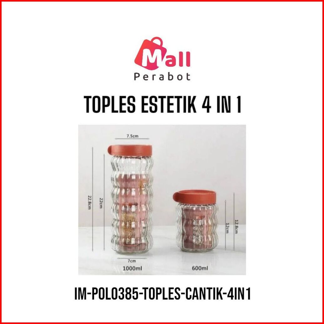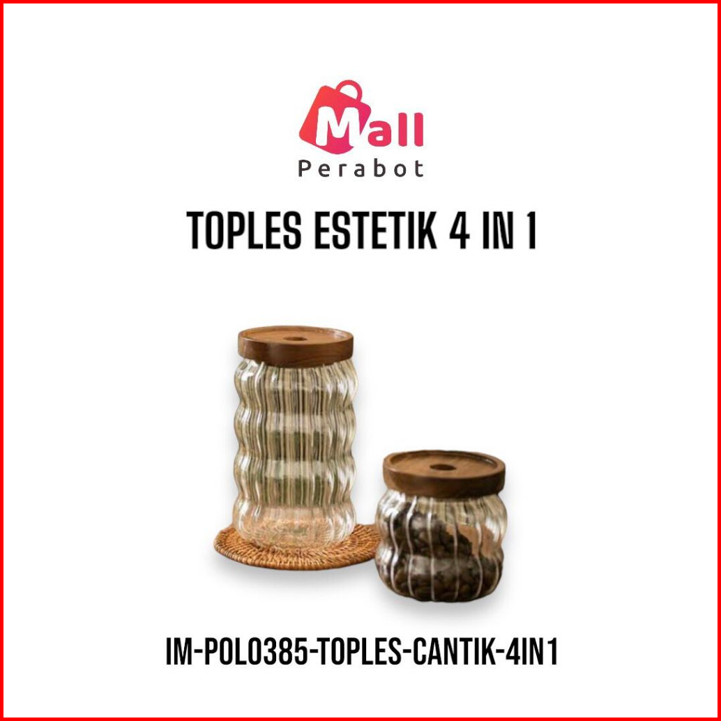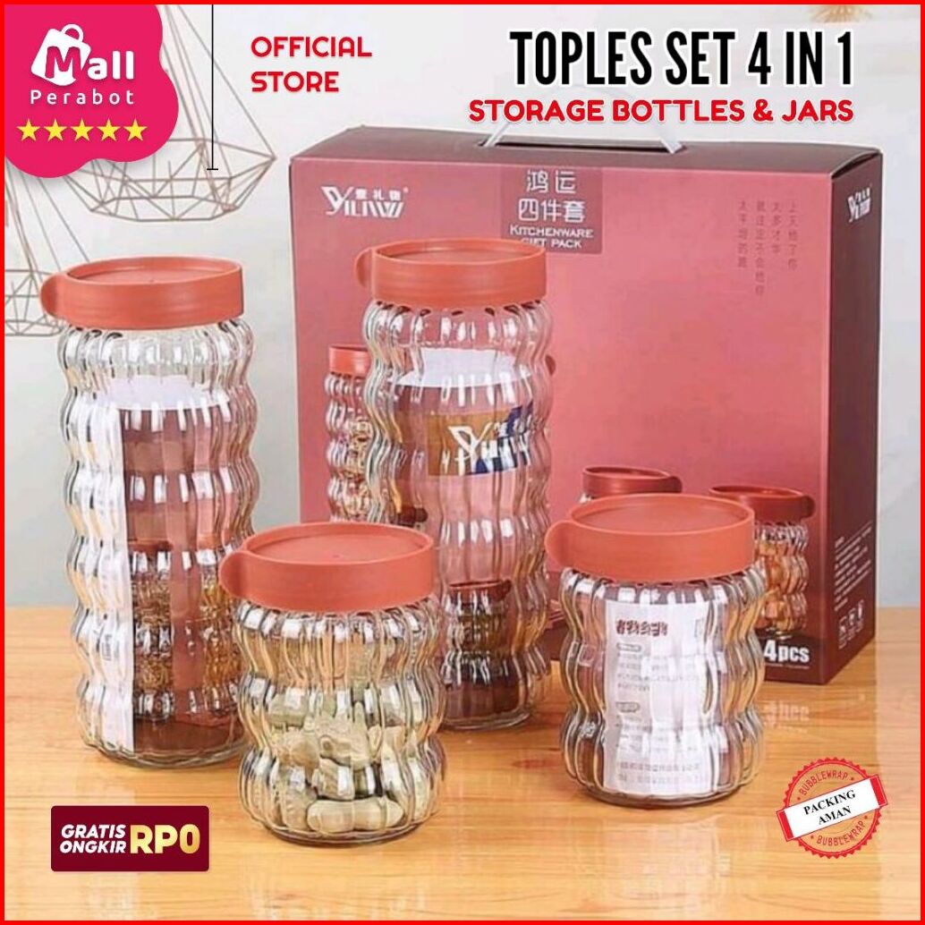 Mall Perabot Toples Estetik Cantik 4 In 1 Tempat Penyimpanan Kue Kaca Transparan Toples Ulir Set