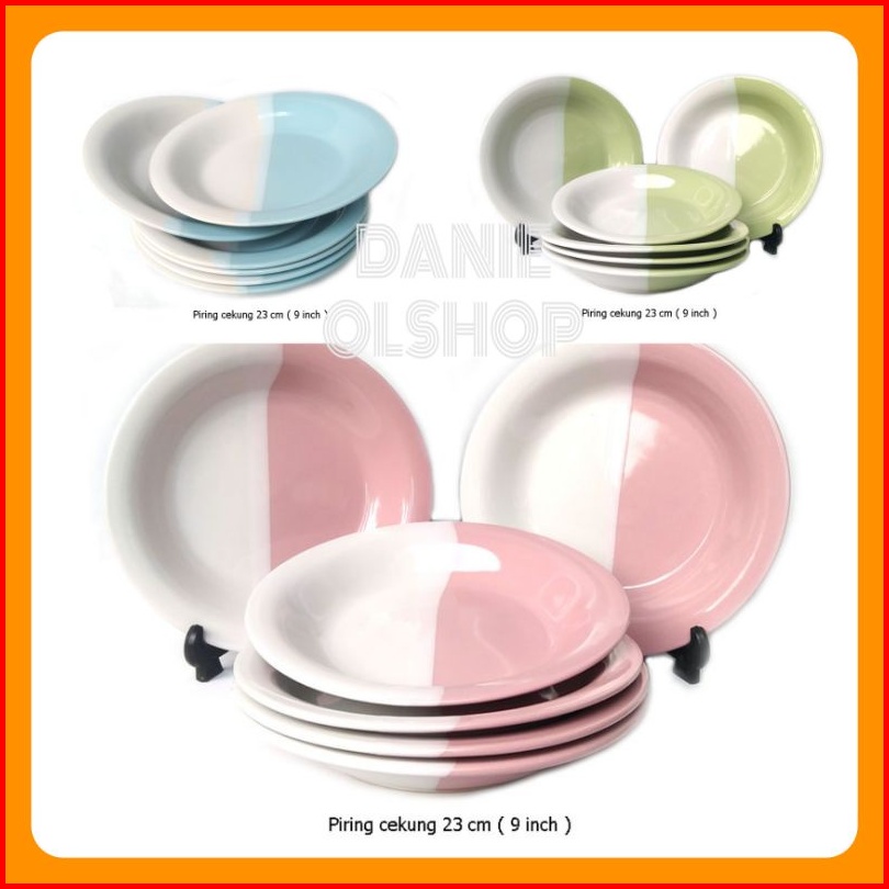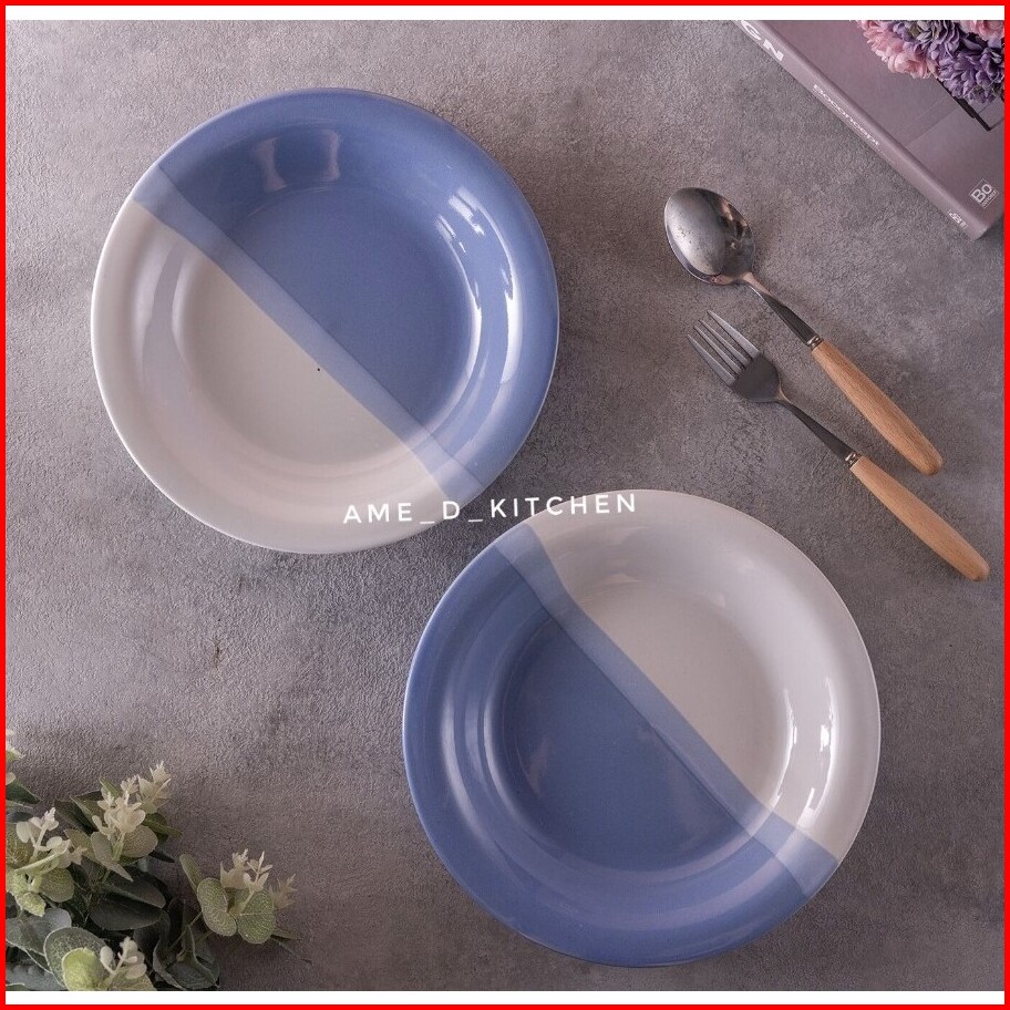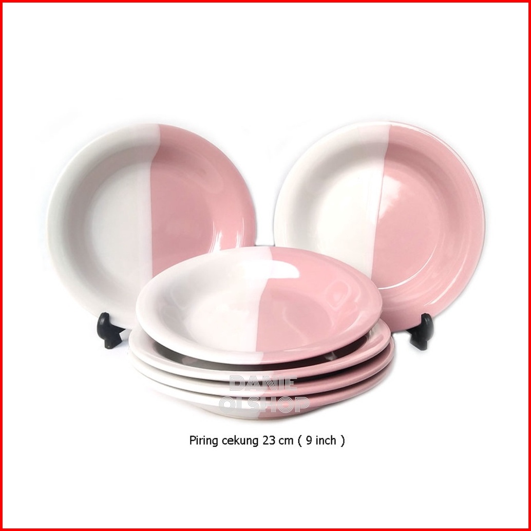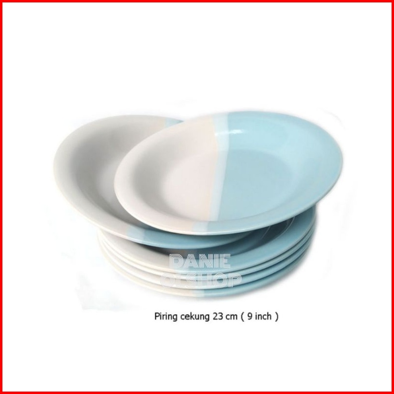 6 Pcs Piring Cekung Keramik Two Tone 23 Cm Kaibon